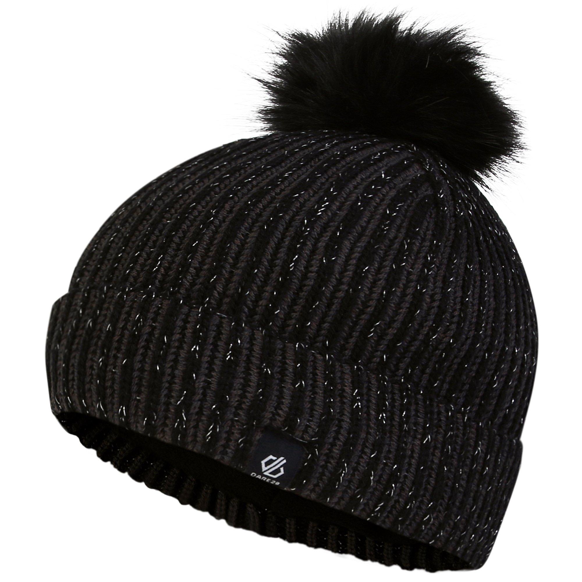 50% Acryl, 50% Polyester. Marke: Dare 2B. Futterstoff: Fleece. Kunstfell Pompon, Metallischer Thread, Gerippter Ärmelaufschlag, Umgekrempelter Umschlag. Gewebe: Jerseyware. Design: Logo. Nachhaltigkeit: Aus recyceltem Material.