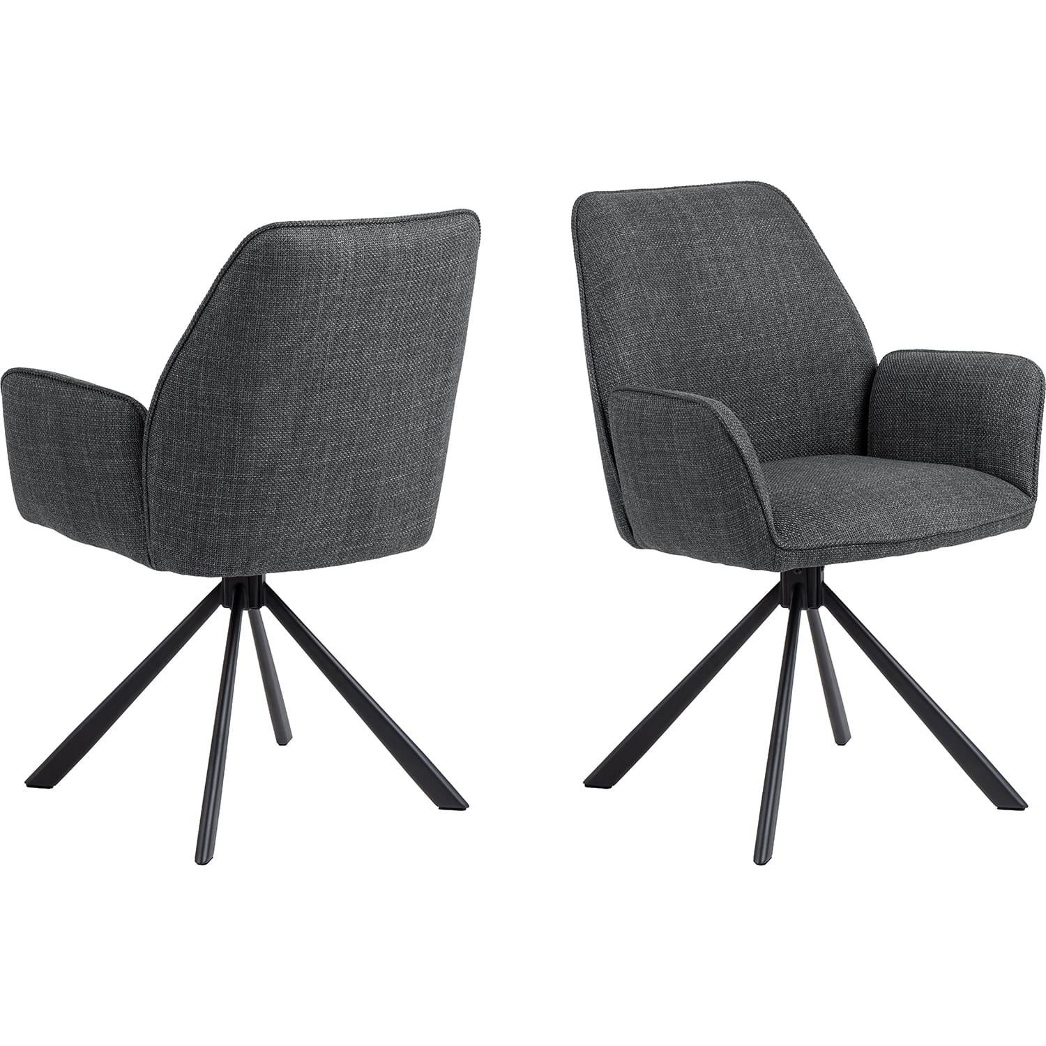 Der Esszimmerstuhl Gwendolyn ist eine Ode an zeitloses Design und anspruchsvolle Ästhetik. Mit seinen klaren Linien und dem Paspeldetail strahlt er einen gehobenen Look aus. Der Stuhl ist mit einem strukturierten dunkelgrauen Stoff bezogen, der einen subtilen Zweiton-Effekt erzeugt. Die schwarze, raue pulverbeschichtete Stahl-4-Sterne-Basis bietet eine robuste Stütze und verfügt über eine praktische Schwenkfunktion. Dieses Möbelstück ist grosszügig dimensioniert, um Komfort zu gewährleisten, ohne übermässigen Platz in Ihrem Wohnbereich einzunehmen.