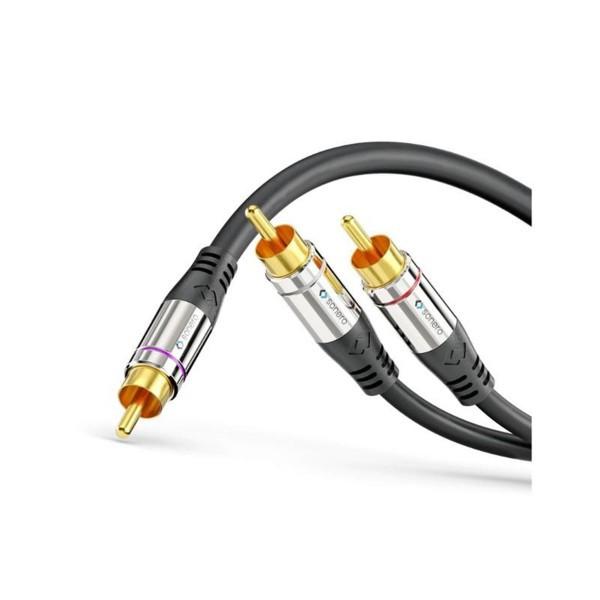 Kabeltyp: Anschlusskabel, Audioanschluss Seite A: Cinch, Audiokanäle: Stereo, Audioanschluss Seite B: Cinch, Detailfarbe: Schwarz, Länge: 10 mVergoldete Kontakte, hochwertige Metallstecker, flexibler KnickschutzHochreine Kupferleiter und 3-fache Schirmung, Aussendurchmesser: 5.5 mm PVCLänge: 10 mCinch Stecker auf 2x Cinch SteckerY-Kabel perfekt für die Adaption eines Stereo-Signals zum Anschluss an einen SubwooferVerchromte Aluminiumstecker garantieren eine optimale Verbindung mit maximaler Übertragungsqualität