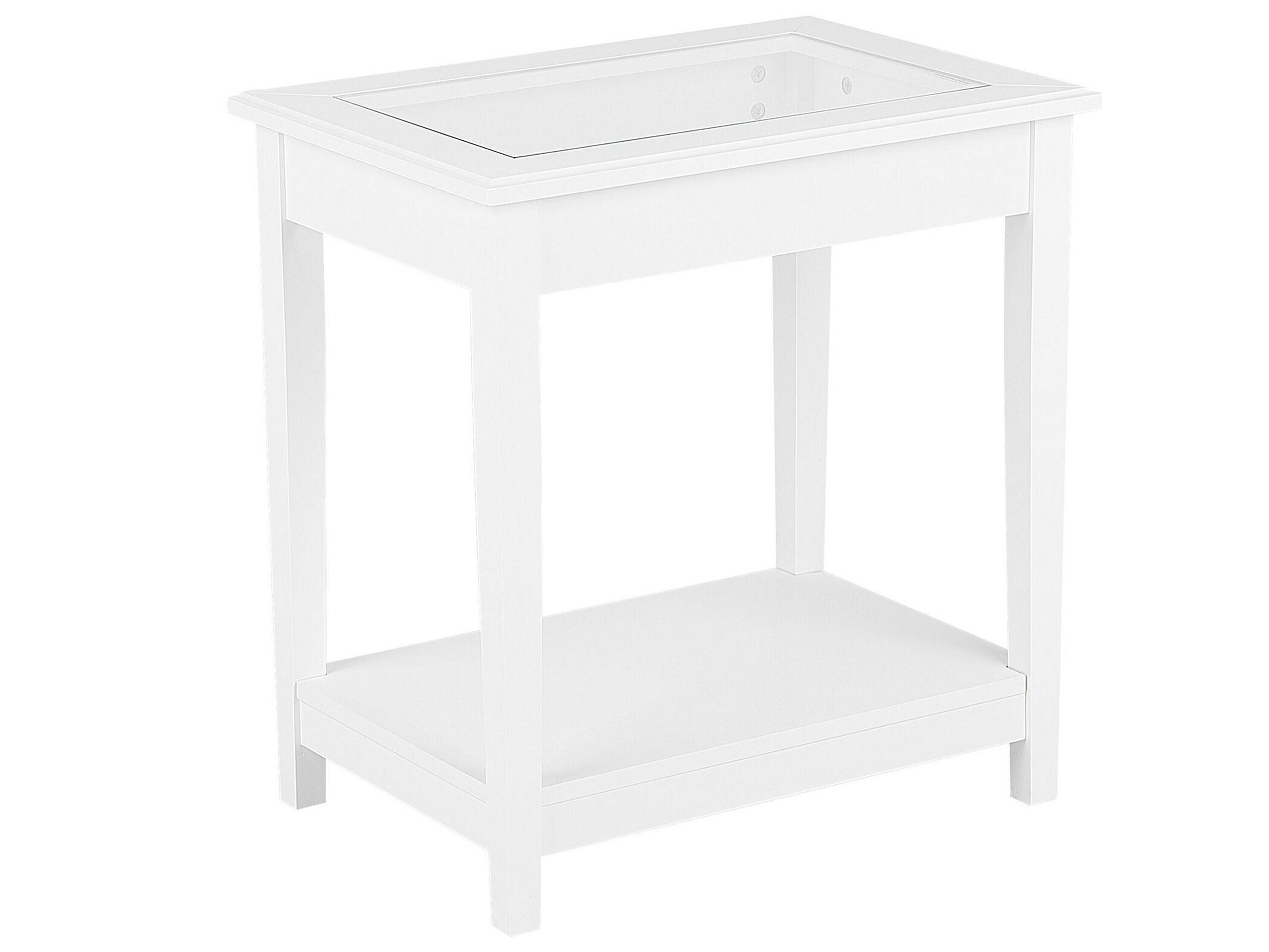 Minimalistischer, weisser Beistelltisch mit Glasplatte. Ein unvergleichlich praktisches Möbelstück, welches entweder als Beistelltisch für ein Wohnzimmer-Sofa oder als Nachttisch in einem Schlafzimmer dienen kann. Auf der Platte aus Sicherheitsglas kann man problemlos eine Tischlampe, einen schönen Blumenstrauss hinstellen oder mit verschiedenen Dekoelementen die Einrichtung exponieren. Mit seinem minimalistischen Design in Weiss und seiner klaren Linienführung kreieren Sie eine frische, landhäusliche Optik.