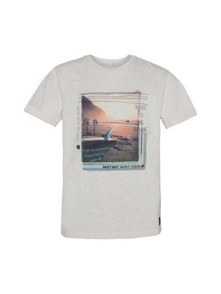Dieses tolle T-Shirt ist aus 100 % Baumwoll-Slub-Jersey hergestellt. Baumwolle ist der perfekte Stoff für den Sommer, da sie atmungsaktiv und bequem ist. Das T-Shirt ist mit einem Foto bedruckt, auf dem ein Surfboard am Strand zu sehen ist. Es hat eine normale Passform. Das PRTSURF JR T-Shirt von Protest ist ein klassisches Sommer-T-Shirt.