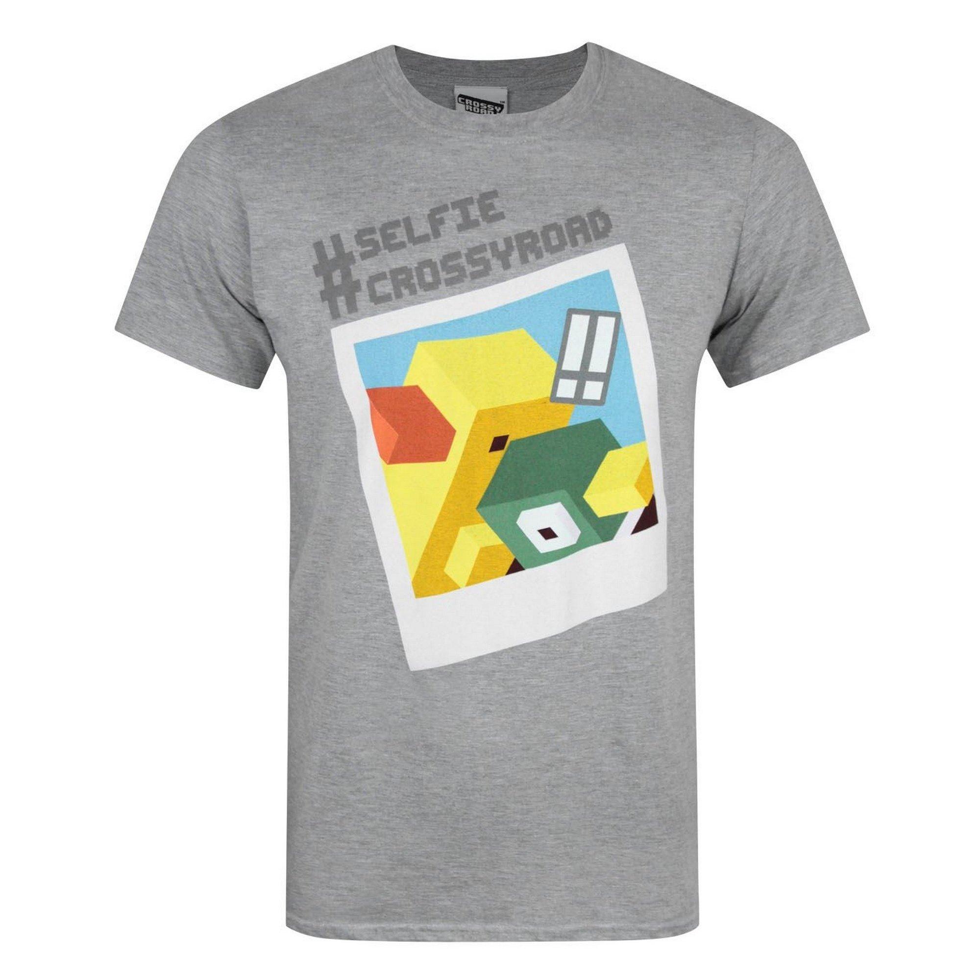 Dieses Kurzarm-T-Shirt verfügt über einen verspielten Grafikdruck, der vom beliebten Spiel Crossy Road inspiriert ist. Das Design zeigt zwei Crossy Road Charaktere im Polaroid-Design mit dem Text "Selfie Crossy Road". Es ist eine lustige Ergänzung für jede Freizeitgarderobe.