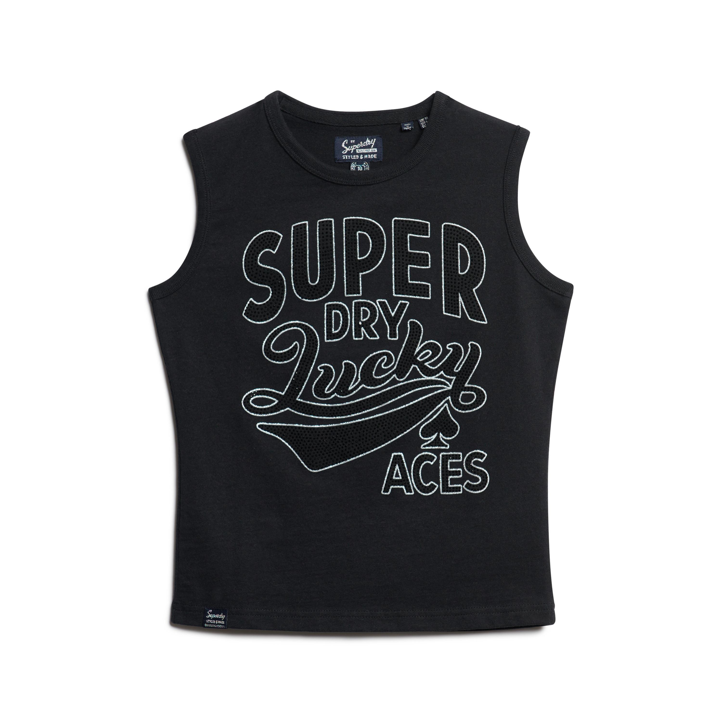 Dieses schmale Tanktop im Retro-Stil bietet einen originellen Look. Die fantasievollen Details heben seine Muster hervor und verleihen einen einzigartigen Stil, der Authentizität inspiriert.