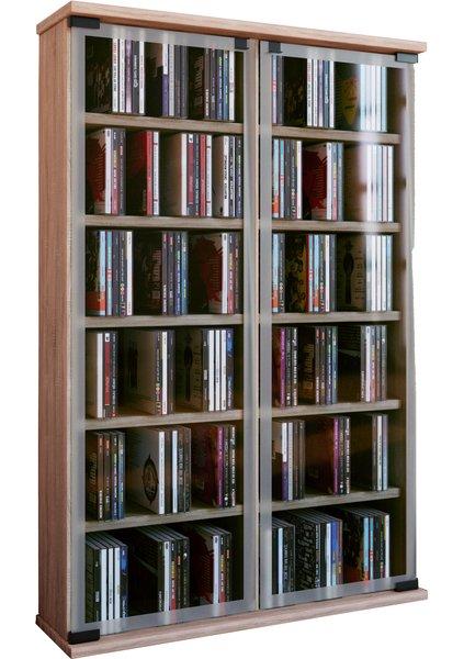 VCM CD Regal Holz | CD Schrank mit ESG-Sicherheitsglastüren für 300 CDs oder 130 DVDs 72-Videos | Maße: H. 92 x B. 60 x T. 18 cm | Elegantes DVD Regal |