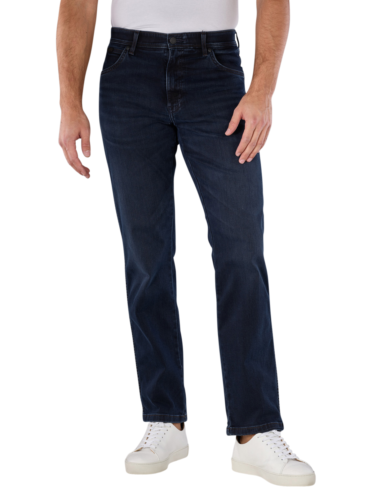 Die Texas Straight Fit Jeans in Midnight Rodeo bietet eine mittel-hohe Bundhöhe und einen geraden Beinausschnitt. Diese dunkelblaue Herrenjeans kombiniert Standarddicke mit Stretchanteil für optimalen Komfort. Das Five-Pocket-Design und der Reissverschluss sorgen für klassische Funktionalität.