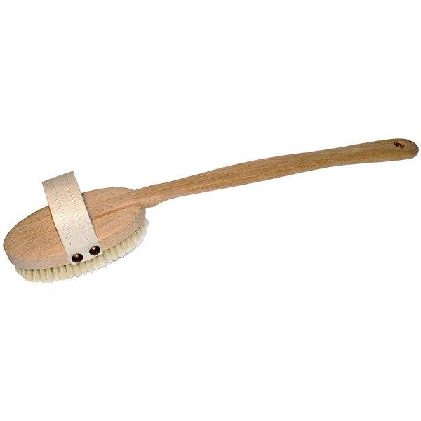 Badebürsten für die Körpermassage, regen die Durchblultung an und sollten wenn möglich während der Morgendusche, beginnend bei den Füssen nach oben in Richtung des Herzens angewendet werden. Rosshaar ist speziell für die Trockenmassage geeignet.