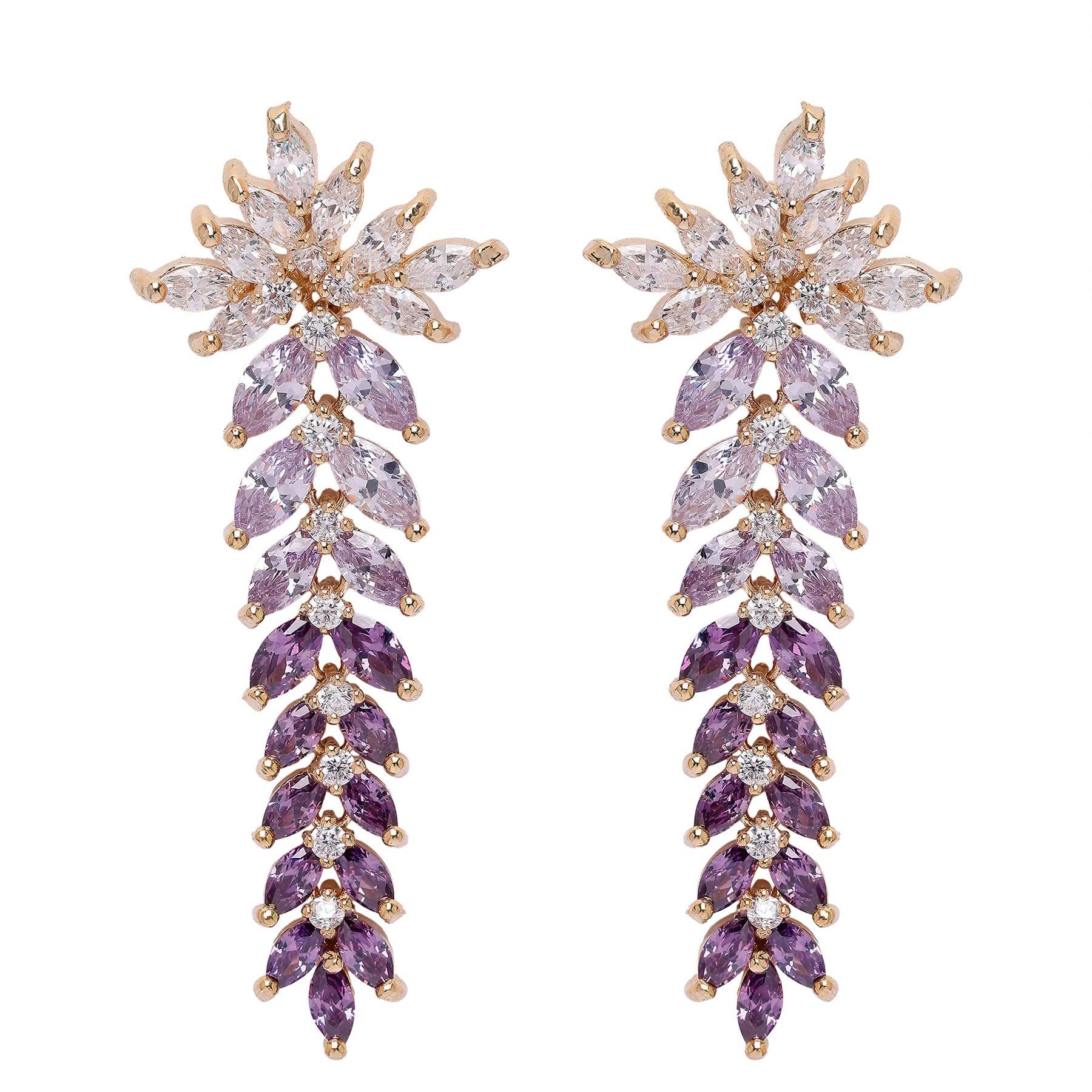 Die Diva Floral Dangle Earrings aus der Diva Kollektion sind ein atemberaubendes Beispiel für von der Natur inspirierte Eleganz und lebendiges Design. Diese exquisiten Ohrringe sind mit mehrfarbigen Zirkonia-Steinen in faszinierenden Blau- und Violetttönen besetzt. Sie eignen sich perfekt für verschiedenste Anlässe, von formellen Veranstaltungen bis hin zu legeren Treffen. Die Kombination aus Blau- und Violetttönen und der goldenen Blüte macht sie zu einem vielseitigen Accessoire, das zu einer Vielzahl von Outfits passt. Diese Ohrringe sind ein herausragendes Accessoire, das Schönheit und Vielseitigkeit vereint. Größe: 2,0 cm x 5,3 cm | Beschichtung: Vergoldet | Verschluss: Stecker und Rückseite