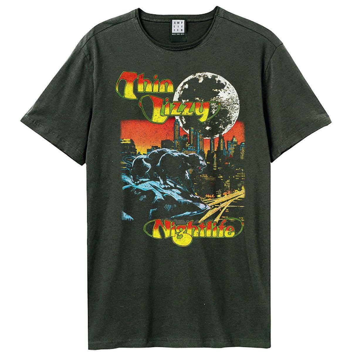 Dieses T-Shirt zeigt einen auffälligen Grafikdruck, inspiriert vom ikonischen "Nightlife"-Album. Das Design präsentiert eine nächtliche Stadtlandschaft unter einem Vollmond, mit einem Panther prominent im Vordergrund. Das kurzärmlige T-Shirt bietet eine bequeme Passform und einen klassischen Rundhalsausschnitt, was es zu einer vielseitigen Ergänzung für jede Freizeitgarderobe macht.