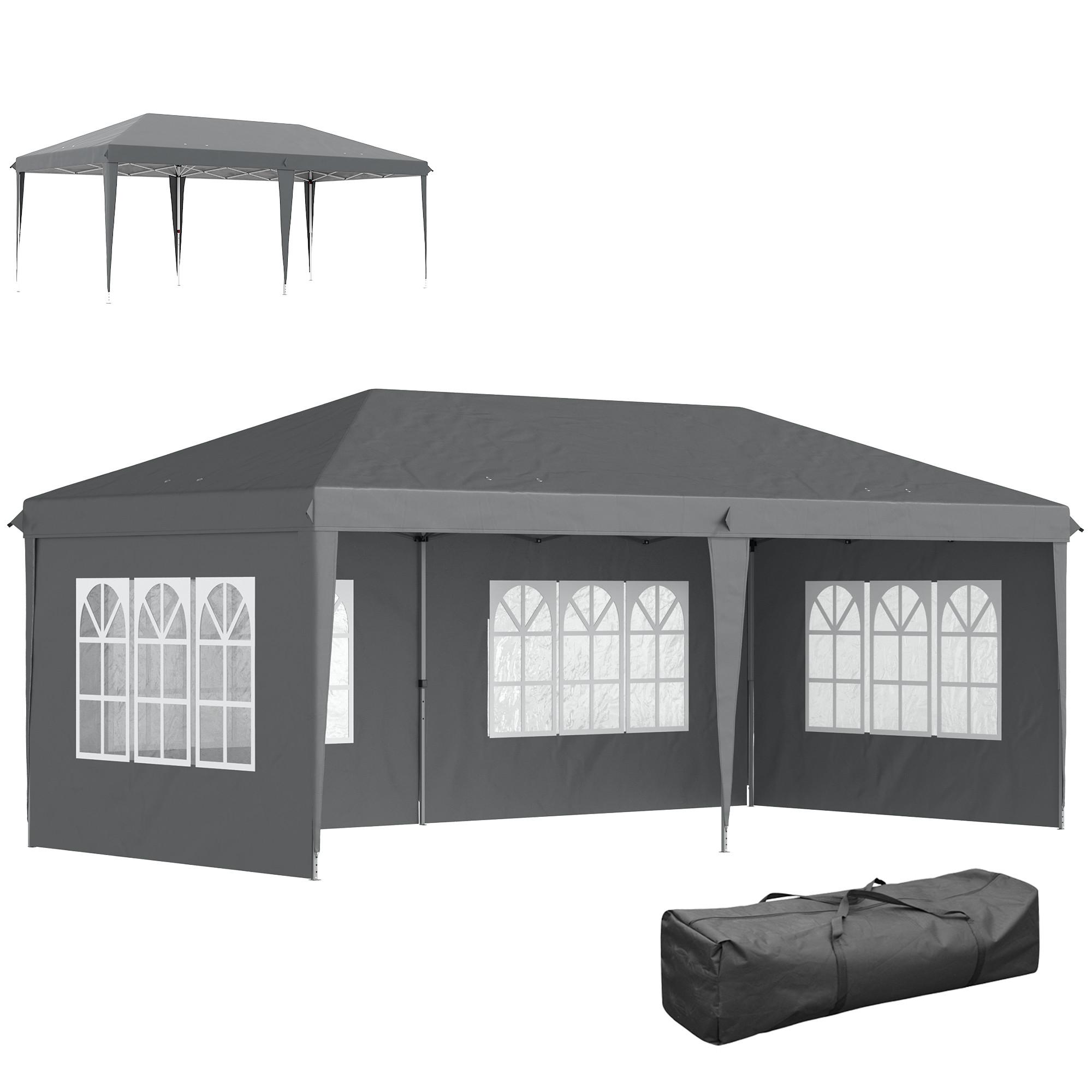 Erleben Sie pure Flexibilität im Freien mit unserem 3 x 6 m großen Faltpavillon von Outsunny. Dieses vielseitige Partyzelt bietet Ihnen nicht nur viel Platz, sondern lässt auch im Handumdrehen einen offenen oder halboffenen Raum schaffen - dank der vier abnehmbaren Seitenwände. Der pulverbeschichtete Stahlrahmen garantiert Stabilität und lässt sich schnell auf- und abbauen. Dank der mitgelieferten Tragetasche können Sie dieses Bierzelt überallhin mitnehmen und sind für jedes Abenteuer gerüstet!