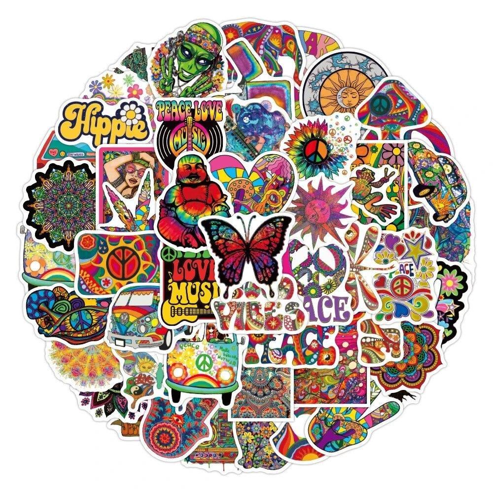- 50 Stück Aufkleber mit dem Hippie-Thema