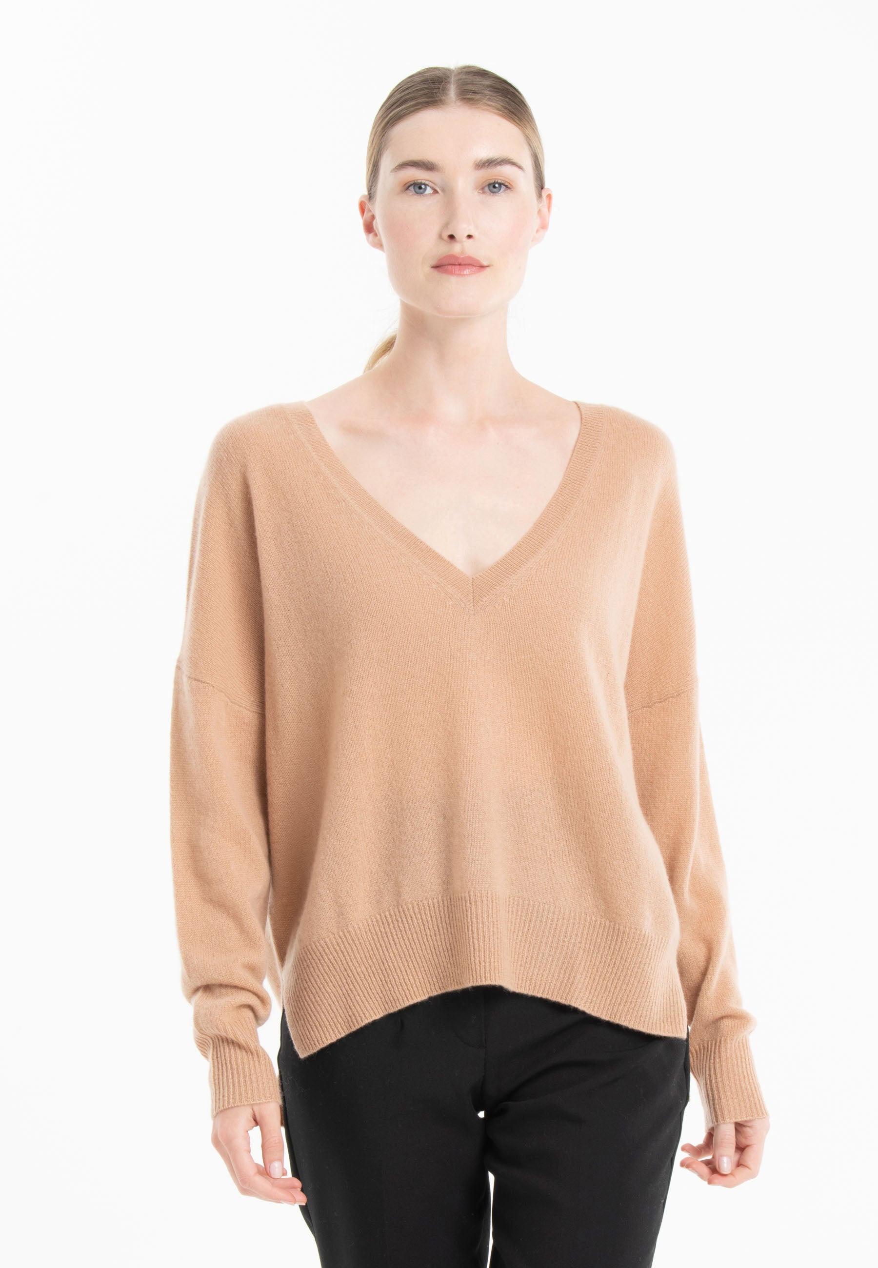 Studio Cashmere8 NAMI 23 V-Ausschnitt Pullover mit farbigem Streifen