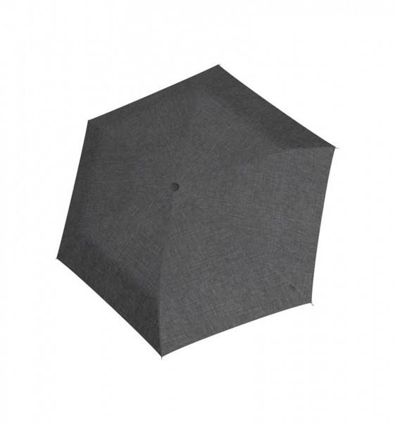 Flacher, stabiler und leichter Taschenschirm, mit nur 2.5 cm ist ideal für die Tasche. Sitzt fest in der Hand, durch exklusives Griffdesign und Handschlaufe. Leichtgängiger Handöffner mit grossem Schirmdach trotz kleinem Packmass. Überschlagsicher: Keine Beschädigung durch Umklappen des Schirmdachs. Mit bis zu 100 km/h im Windkanal getestet, nach jedem Regeneinsatz aufgespannt trocknen. Bezug aus schnelltrocknendem, wasserabweisendem Polyestergewebe mit recycelter PET Beschichtung. Farbe: Grau