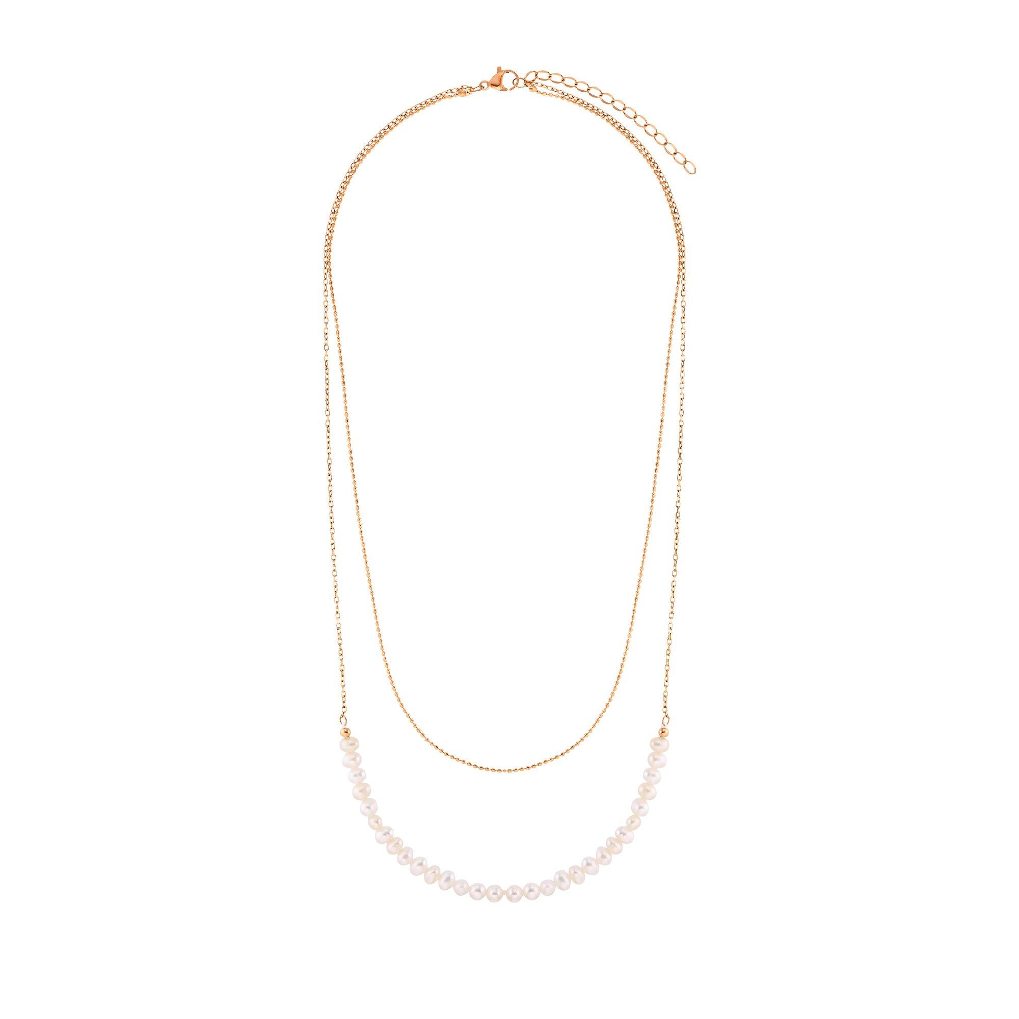 Perlen sind in! Vor allem, wenn man sie in leichten und modernen Designs trägt, die jung, frisch und unkompliziert wirken. Mit dieser Perlenkette beweist ihr nicht nur Trendgespür, sondern auch guten Geschmack und Stil. Das zarte, zweireihige Collier vereint den schimmernden Perlenreigen mit filigranen Ketten. Durch seine modische Lässigkeit verleiht es eleganten Businessoutfits eine Prise Leichtigkeit, ohne Stilbrüche zu provozieren. Ein Must-have, vor allem im Sommer! Die 2in1-Kette ist ein wunderbares Geschenk, das übrigens auch hervorragend zum Brautkleid aussieht! Die Geschenkverpackung gibt es kostenlos dazu.