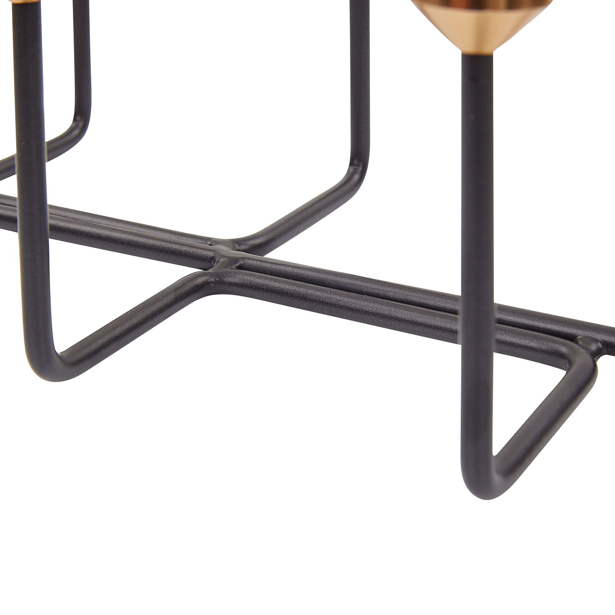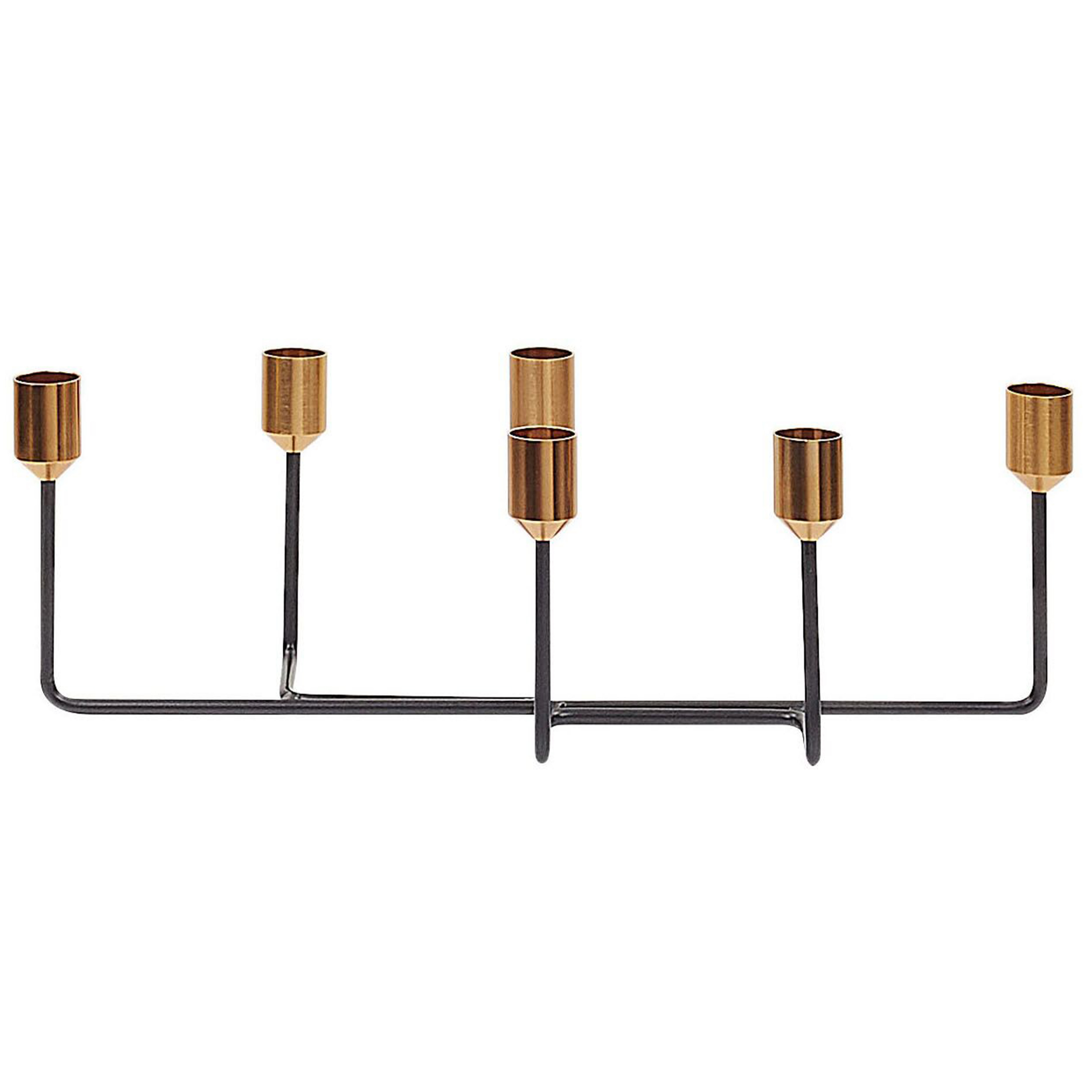 Zweifarbiger, 6-flammiger Kerzenständer in edler Optik. Die gerade, geometrische Form der schwarzen Arme, in Kombination mit dem goldfarbenen Akzent am Kerzenfuss verleihen diesem Accessoire eine dekorative und sehr edle Ausstrahlung. Der Kerzenständer ist für 6 Tafelkerzen geeignet und sorgt für ein romantisches Feeling am Abend.