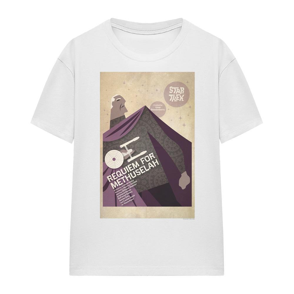 Dieses T-Shirt zeigt einen Grafikdruck, der von "Requiem for Methuselah", Episode 74 von Star Trek: The Original Series, inspiriert ist. Das Design fängt die Essenz der klassischen Science-Fiction-Show ein und macht es zu einem unverwechselbaren Stück für Fans.