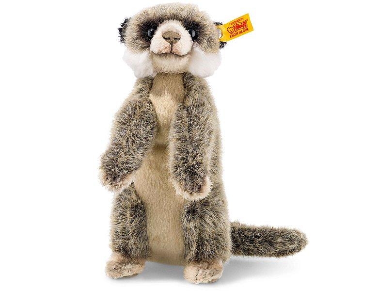 Das 22 cm grosse Erdmännchen Baby bringt mit seinem vorwitzigen Gesichtchen Spielfreude in jedes Zuhause. Sein streichelweicher Webpelz in braun-beige kombiniert mit einem hellbraun schimmernden Bauch macht es zum idealen Kuschelfreund. Es hat Kunststoffaugen und ist aufwartend positioniert, sodass es perfekt von kleinen Händen gehalten werden kann. Die Füllung besteht aus synthetischem Material, und das Spielzeug ist waschmaschinenfest bei 30 Grad.