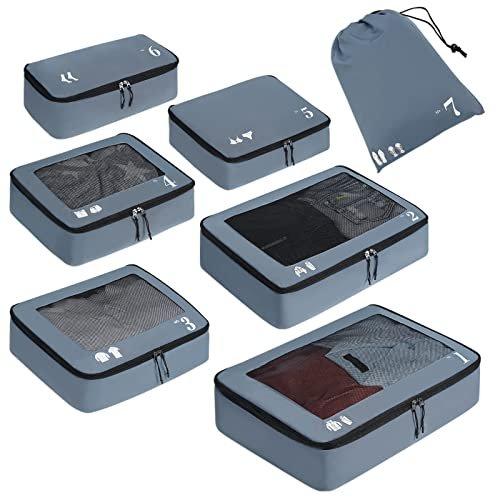Only-bags.store, Kofferorganisator, Packwürfel, 7-teiliges Set, Packwürfel, recycelte Packsäcke für Haustiere, Kofferorganisator für Rucksack, Schuhsack, Kleidersäcke (grau)