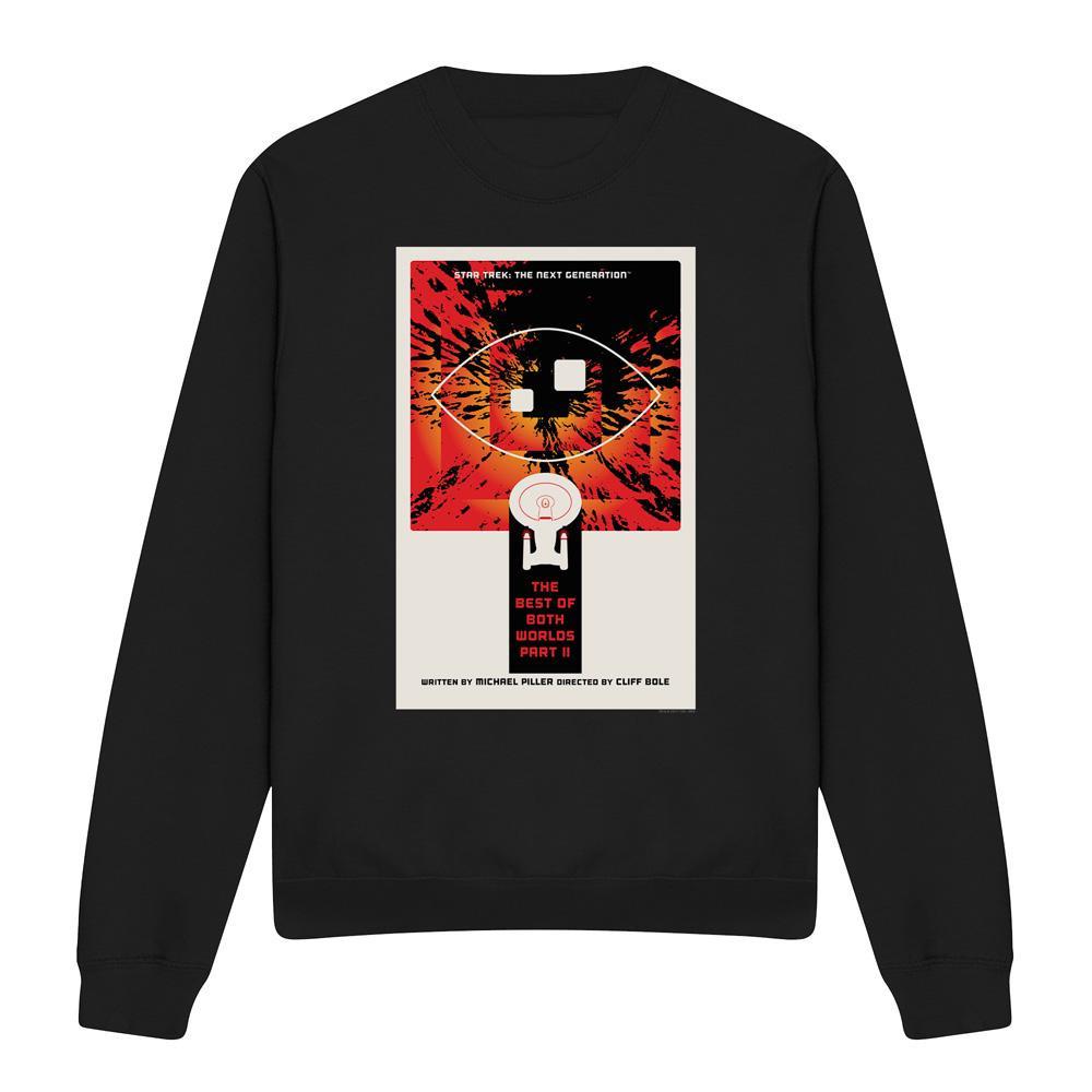 Dieses Sweatshirt zeigt einen Grafikdruck, inspiriert von Star Trek: The Next Generation Staffel 4 Episode 1, "The Best of Both Worlds Part II". Das Design fängt die Essenz der ikonischen Episode ein und macht es zu einem unverwechselbaren Stück für Fans.
