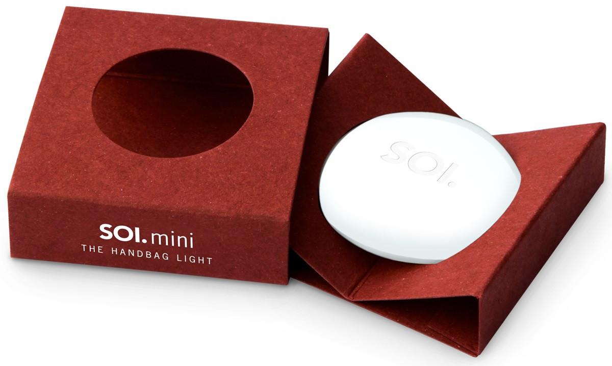 Nicht suchen. Finden. Das mini Handtaschenlicht macht Schluss mit dem Gewühle in Taschen und Rucksäcken. Eine Leuchte, die sofort aufleuchtet, sobald man in der Tasche zu suchen beginnt. Ohne Schalter und mit einem Näherungssensor. Nach zehn Sekunden schaltet SOI. sich automatisch wieder aus. Die kreisrunde Form mit elliptischem Querschnitt steht für elegantes, zeitloses Design. Form und Oberfläche wirken als Handschmeichler. Die sensorbetriebene Leuchte für einfaches Finden von Dingen in der Tasche. Schaltet sich bei Annäherung automatisch ein und nach 10 Sekunden automatisch aus. Ideal für Handtaschen, Rucksäcke, Koffer, Zelte oder überall, wo es dunkel ist.Wird mit zwei austauschbaren CR2032 Batterien (inklusive, austauschbar) geliefertBatteriekapazität: ca. 500 Zyklen (3 4 Monate). Elegantes Design in nachhaltiger Geschenkverpackung. Das ideale Geschenk für die dunkle Jahreszeit. In Deutschland entwickelt und hergestellt.