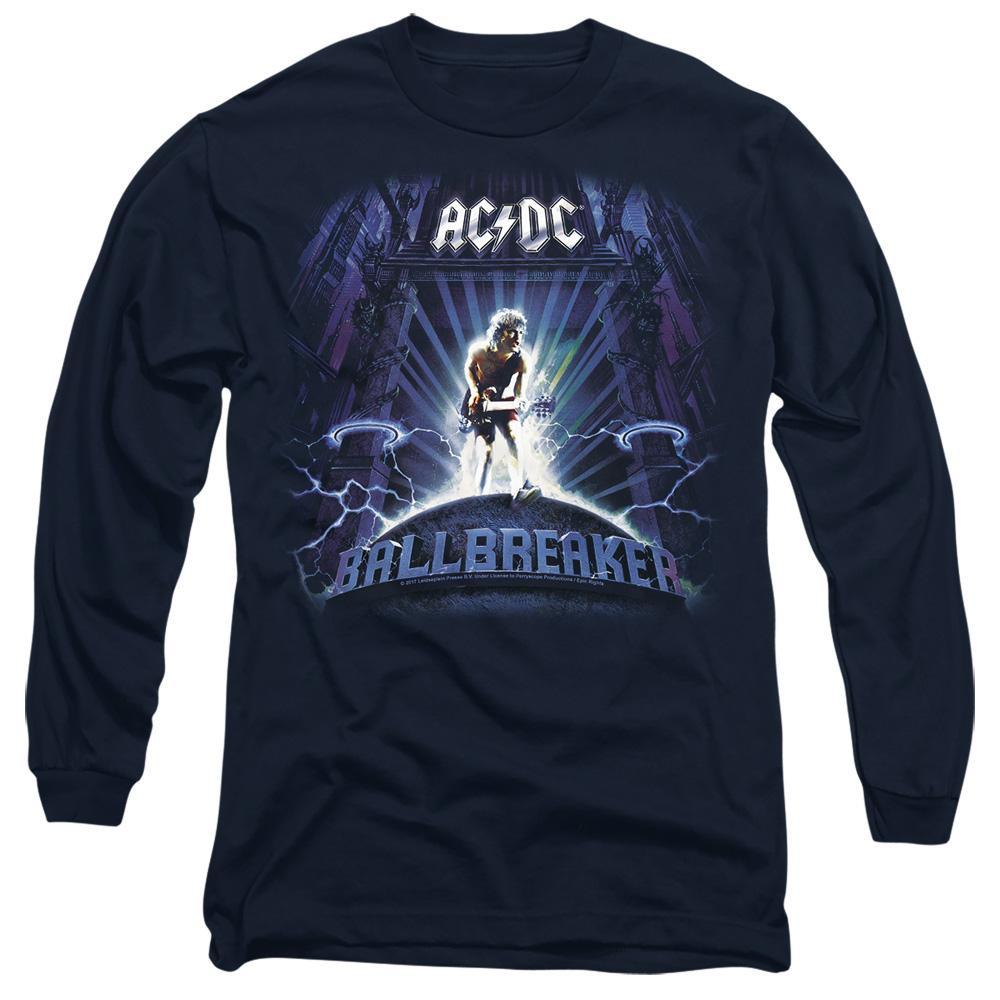 Dieses Langarm-T-Shirt zeigt einen auffälligen Grafikdruck, inspiriert vom ikonischen "Ballbreaker"-Album von AC/DC. Das Design präsentiert ein dynamisches Bild eines Gitarristen, umgeben von elektrischer Energie, vor einem dramatischen architektonischen Hintergrund. Dieses T-Shirt ist eine grossartige Möglichkeit, die Wertschätzung für klassische Rockmusik zu zeigen.