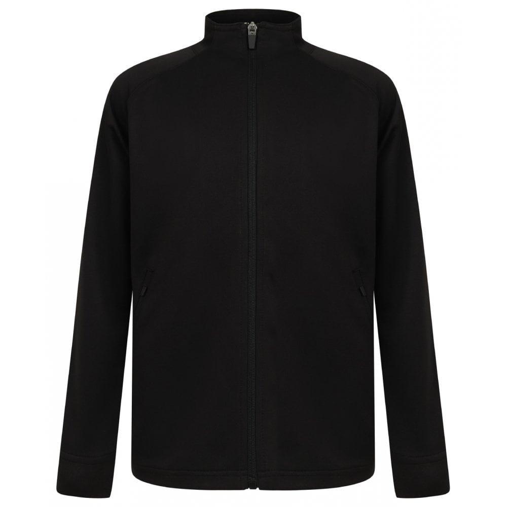 100% Polyester. GSM (Gramm pro Quadratmeter): 250. Design: Kontrasteinsatz. Verschluss: Kontrastfarbener Reißverschluss. Passform: Schmal. Kleidungsmerkmale: Abreiß-Etikett. Taschenart: 2 Reißverschlusstaschen. Halsausschnitt: Weiter Stehkragen. Ärmelart: Langärmlig. Bündchen: gerippt.