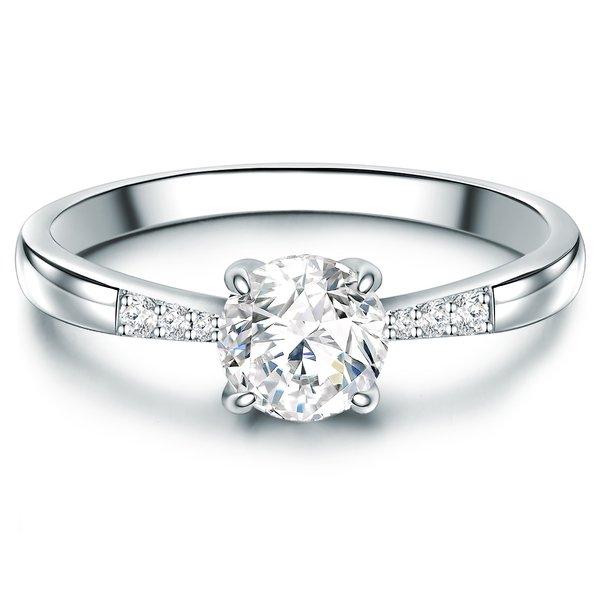 Dieser luxuriöse Verlobungsring der Manufaktur Trilani zaubert garantiert ein begeistertes "Ja" auf die Lippen Ihrer Liebsten! Ein opulenter Zirkonia-Solitär in Brillantschliff krönt die filigrane Ringschiene und wird seitlich von je 3 in die Ringschiene eingelassenen Zirkonia-Steinen flankiert. Die klassische Krappenfassung des Solitärs sorgt für maximalen Lichteinfall und ein unvergleichliches Funkeln. Der glamouröse Ring aus hochglanzpoliertem 925er Sterlingsilber ist durch eine Rhodinierung vor dem Anlaufen geschützt und wird so zum glanzvollen Lieblingsstück. Eine tolle Brautschmuck-Alternative zu teuren Diamantringen!