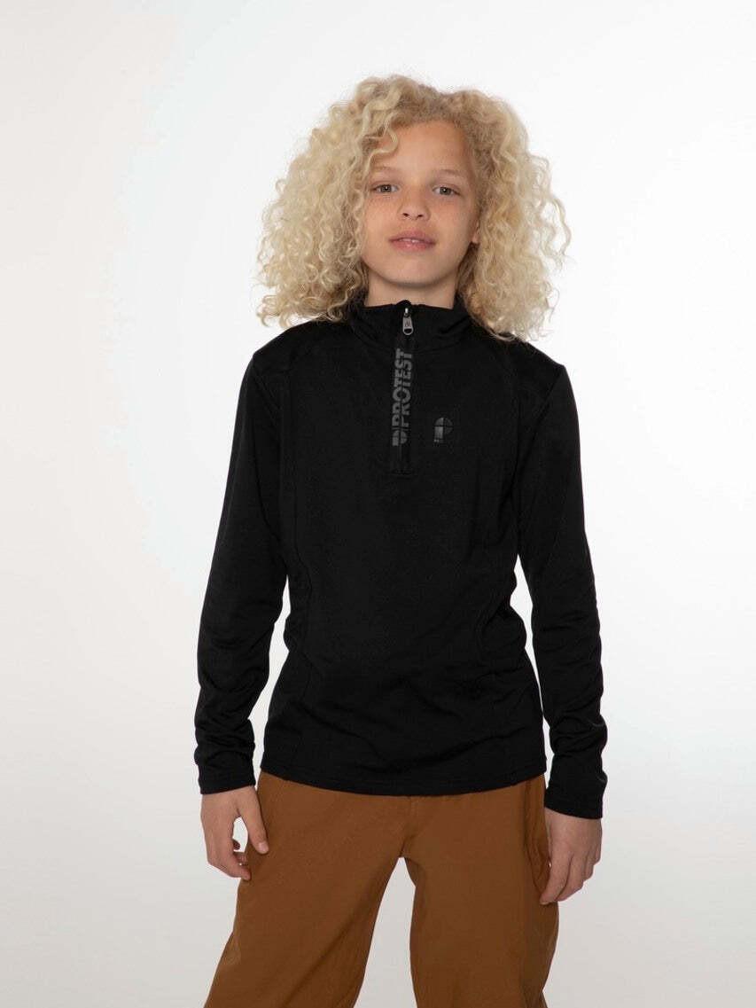 Der Willowy JR von Protest ist ein feiner Pulli aus atmungsaktivem, feuchtigkeitsableitendem Powerstretch-Material. Die Außenseite ist glatt, während die Innenseite gebürstet wurde, um für ein superweiches Fleece-Feeling zu sorgen. Der Willowy JR von Protest ist eine perfekte mittlere Schicht, wenn du auf der Piste bist, und sorgt für Komfort an einem langen Tag im Schnee. Das Model ist 1,52 m groß und trägt Größe 152.