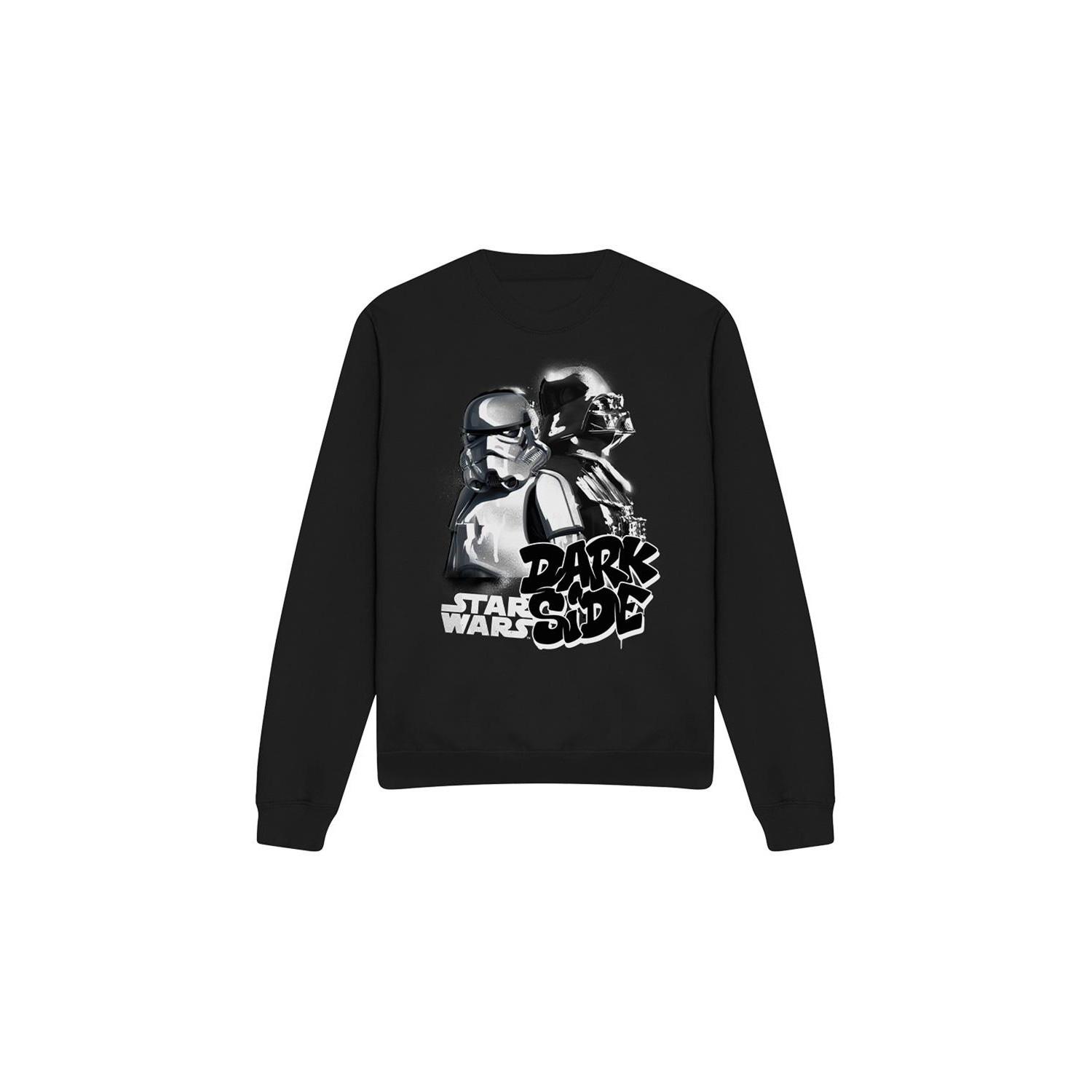 Dieses Sweatshirt zeigt einen auffälligen Grafikdruck eines Stormtroopers und Darth Vaders, der die ikonische 'Dunkle Seite' aus Star Wars verkörpert. Das Design ist prominent auf der Vorderseite platziert und macht es zu einem herausragenden Stück für Fans.