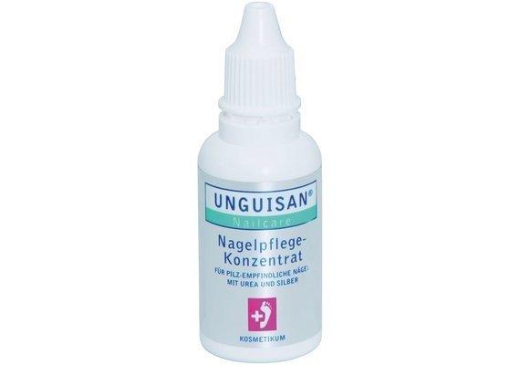 Unguisan Nailcare pflegt spröde und splittrige Nägel und macht harte Nagelhaut weich und geschmeidig. Durch seine innovative Formel mit Urea und Silber bietet es zusätzlich effektiven Schutz für pilzempfindliche Nägel. Das Konzentrat ist hochergiebig, dermatologisch getestet und für Diabetiker geeignet. Anwendung: 2 x täglich 1?2 Tropfen direkt auf den Nagel träufeln und einmassieren. Inhaltsstoffe: Silber, Urea, Extrakt aus Island-Moos und Schwarzer Johannisbeere, Salicylsäure.