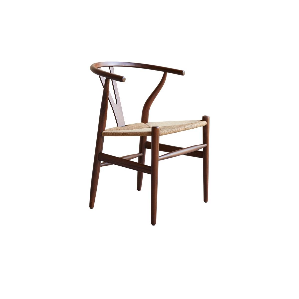 Er vereint auf elegante Weise skandinavisches Design mit unvergleichlichem Komfort. Die handgefertigte, geflochtene Sitzfläche sorgt für einen einzigartigen Charakter. Seine Y-förmige Rückenlehne stützt den Rücken, wobei seine Kurven und Armlehnen für zusätzlichen Komfort sorgen. Er ist zeitlos und fügt sich dank seines schicken Aussehens und seiner Robustheit harmonisch in alle Räume des Hauses ein. Seine Lackierung erleichtert die tägliche Pflege.