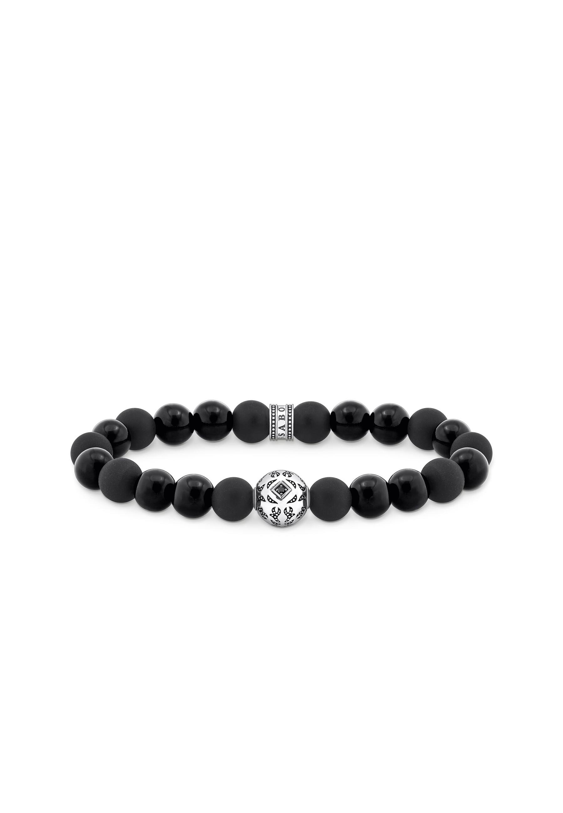 Durch das Tragen dieses Steinarmbandes können Sie sich vor negativen Energien und Einflüssen schützen. Dem Obsidian wird eine starke Schutzwirkung nachgesagt. Matte und polierte Steinperlen sind in einem spannenden Layout angeordnet und mit einer Perle aus recyceltem, geschwärztem Silber kombiniert. Sie ist reichlich mit mystischen Linien und schwarzen Zirkoniasteinen verziert. Dieses Perlenarmband kann Dich auf Deinem Weg unterstützen. Perlenarmband aus mattem und poliertem Obsidian Logo-Ring und Bead mit fein gravierten Linien und kleinen, schwarzen Zirkoniasteinen aus recyceltem, geschwärztem Silber 16 cm langes Armband, das leicht anzulegen ist