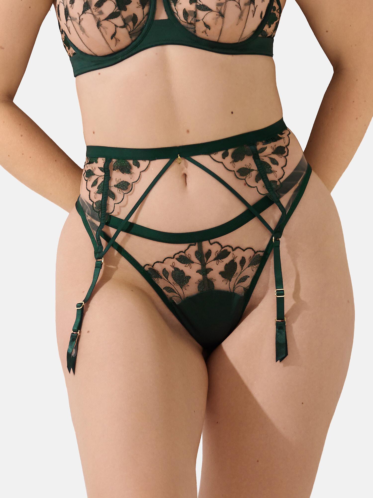 Transparent, sexy und romantisch – bestickte Details sind ein wiederkehrendes Thema. Die Natur und ihre Feinheiten dienen als Hauptinspirationsquelle für botanische und florale Muster und Farben. Diese zeitlose Kollektion wurde mit genau dem richtigen Mass an Eleganz und einer unwiderstehlich verführerischen Ausstrahlung entworfen. Leicht glänzendes Mikromaterial wird mit einer Stickerei aus Blumenmotiven auf ultrafeinem hautfarbenem Tüll kombiniert, wodurch tattooähnliche Muster auf der Haut entstehen. Details wie Gummibänder, laserähnliche Ornamente und feine, verspielte Paspeln schaffen unsichtbare Ränder aus raffiniertem Tüll. Diese Dessous sind mit viel Transparenz gestaltet, was ihnen einen sehr lässigen und gewagten Look verleiht. Erhältlich in samtigem Dunkelrot oder intensivem Waldgrün, die die von der Natur inspirierten Stickereien sowie Weiblichkeit und Leidenschaft betonen.
