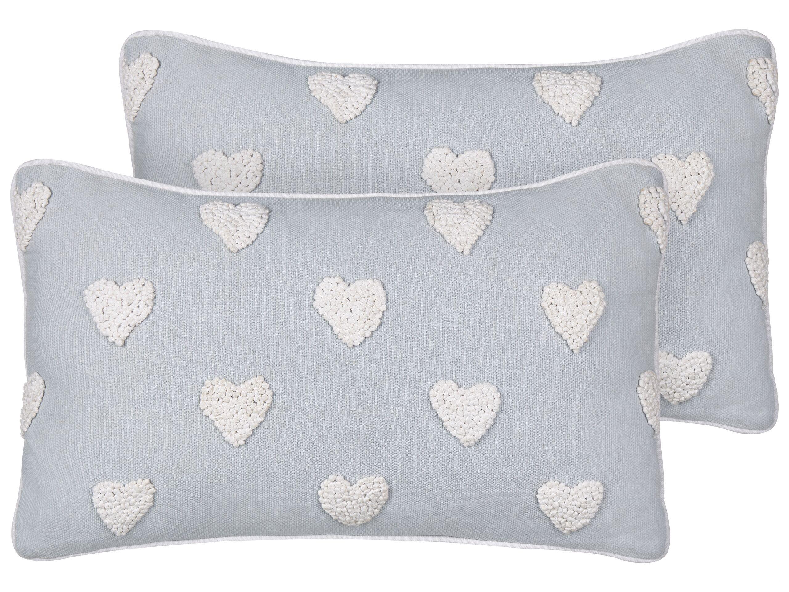 Handgefertigte Kissen mit besticktem Herzmotiv. Diese Baumwollkissen mit ihrem bezaubernden, gestickten Herzchen-Muster kann man einfach nur lieben. Sie werden in jedem Raum eine behagliche Atmosphäre schaffen - egal ob im Kinderzimmer oder Wohnzimmer. Die plüschige Füllung sorgt für eine angenehme Weichheit, und dank des Reissverschlusses lassen sich die Bezüge für eine schnelle Reinigung ganz einfach abnehmen.