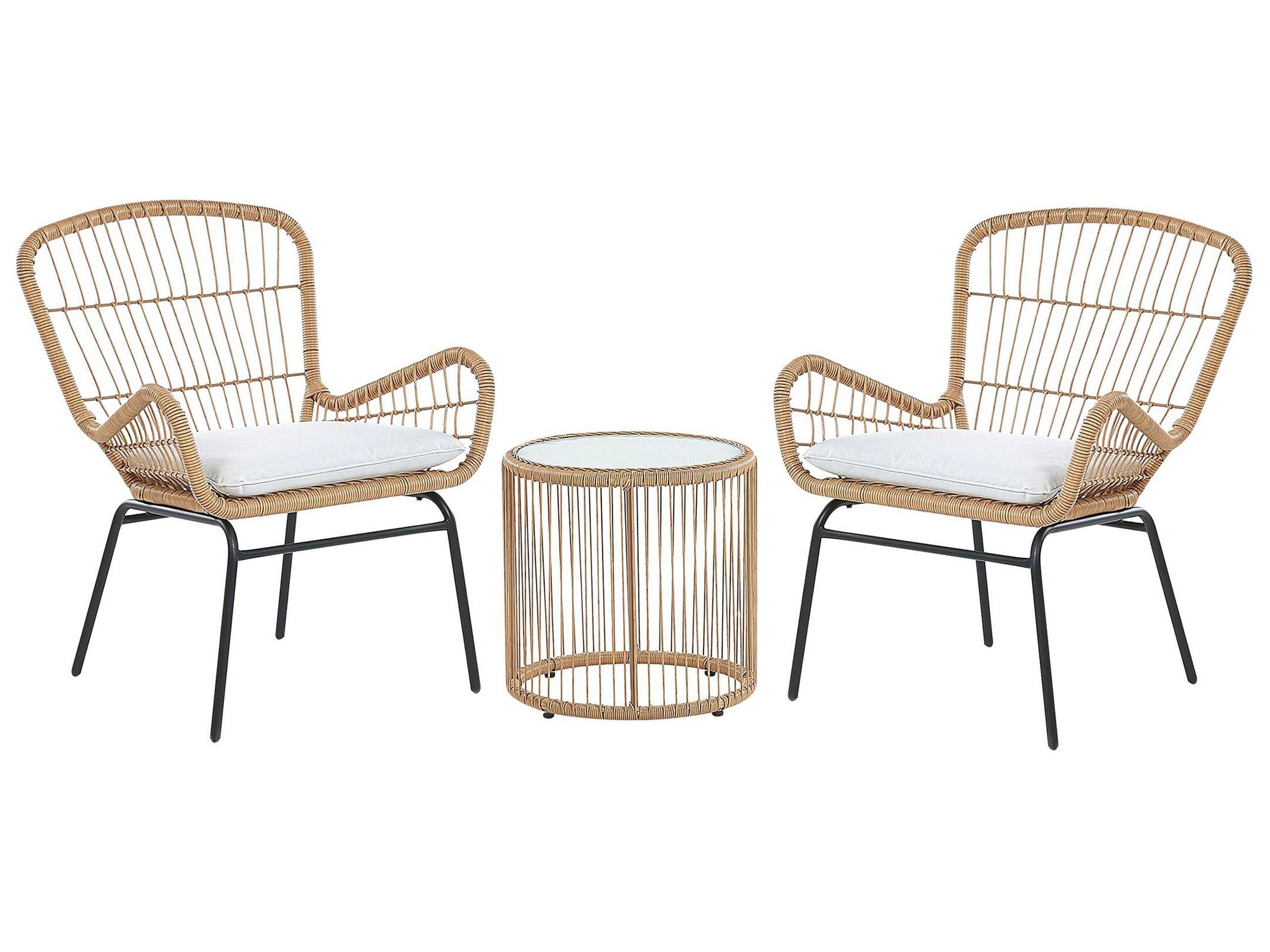 Romantische Sitzgruppe mit kleinem Beistelltisch. Ein Gartenset, das mit eleganter und einladender Optik sowie hochwertiger Verarbeitung punktet. Der kleine runde Tisch passt wunderbar mit den 2 Rattanstühlen samt bequemer Sitzkissen. Die Möbel können dank der wetterfesten Materialien problemlos im Aussenbereich eingesetzt werden und schaffen zudem noch eine einladende Atmosphäre in schickem Design.