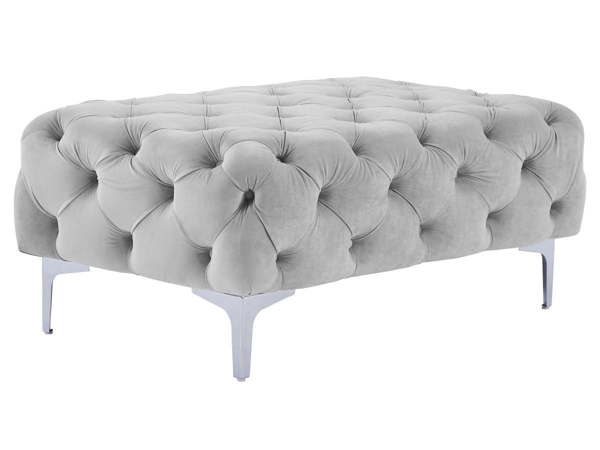 Vente-unique Chesterfield-Hocker - Samt - Hellgrau - EDWINA
