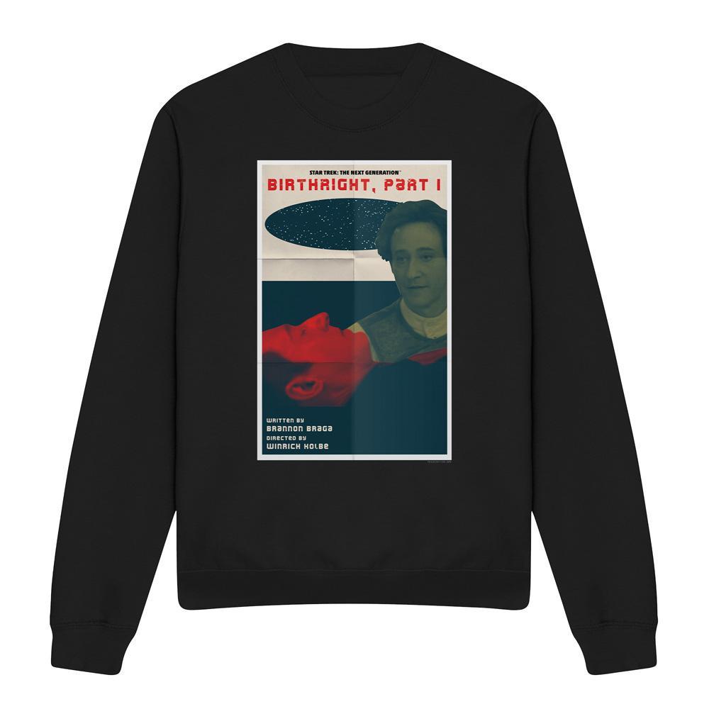Dieses Sweatshirt zeigt einen einzigartigen Grafikdruck, inspiriert von "Star Trek: The Next Generation" Staffel 6 Episode 16, "Birthright, Part I". Das Design fängt die Essenz der Episode mit einer markanten Optik ein, die Charakterbilder und Episodendetails umfasst. Es ist eine bequeme und stilvolle Wahl für Fans der Serie.