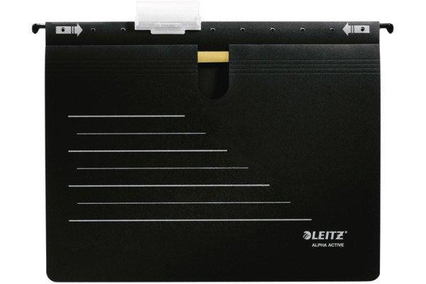 ALPHA ACTIVE - Hängehefter LEITZ Alpha Active vereint die bewährte Leitz Qualität der Hängeregistratur mit den innovativen Eigenschaften für mobilen Einsatz. Ausgestattet mit Organisationsdruck und einer Schiene mit einschiebbaren Hängehaken für einen störungsfreien Transport. Mit Heftmechanik für kaufmännische Heftung Eigenschaften: stabil, umweltfreundlich Inhalt: 5 Stück Material: RC-Natron-Karton (250g/qm)