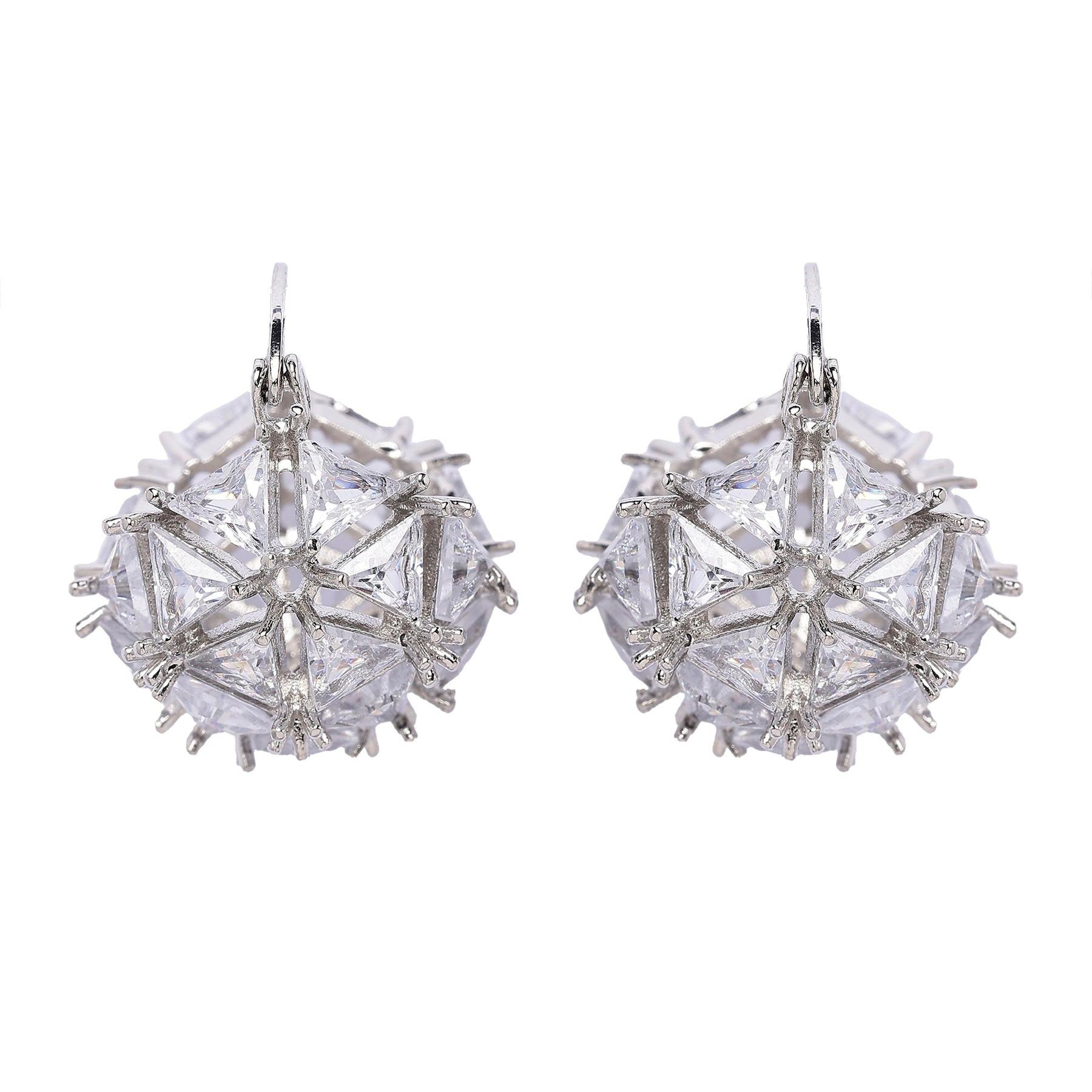 Dieser Ohrring besticht durch ein faszinierendes Ensemble funkelnder Steine, die sorgfältig zu einem einzigartigen Design angeordnet sind. Die filigranen geometrischen Muster und die Brillanz der Steine machen diesen Ohrring zu einem echten Blickfang. Er ist ein Statement-Piece, das Eleganz und Raffinesse ausstrahlt. Größe: 1,8 cm x 2,0 cm | Beschichtung: Rhodiumplattiert | Verschluss: Stecker und Rückseite