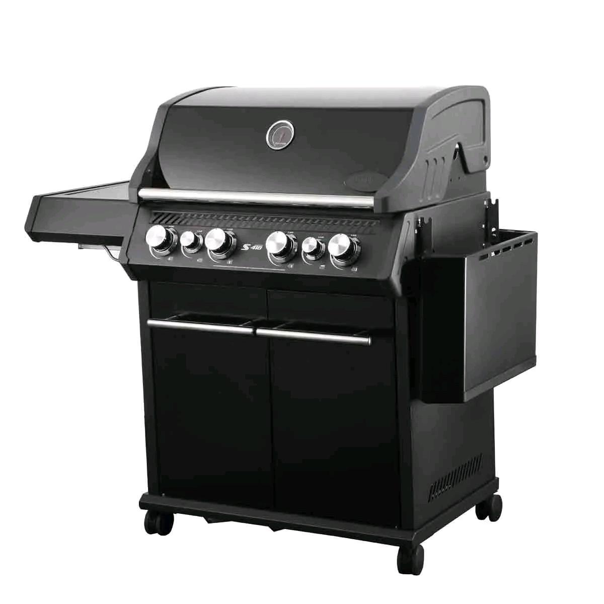 Santos S S-418 - Gasgrill, Seiten- und Heckbrenner, Komplett Schwarz inkl. Drehspiess, Rostheber
