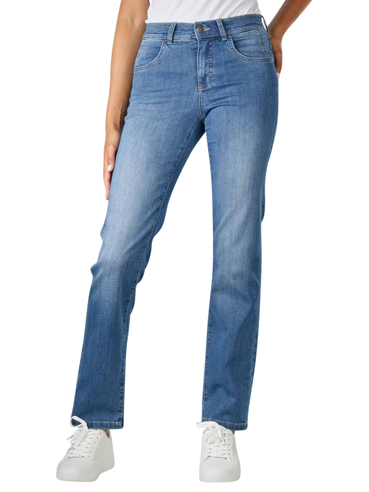 Die Dolly Straight Fit Sporty Denim Jeans im Farbton Mid Blue Used mit Waschungseffekten bietet einen sportiven 5-Pocket-Look. Mit geradem Bein und hoher Leibhöhe zaubert sie eine tolle Figur. Dank hochwertigem Denim-Stoff mit Stretchanteil überzeugt diese Damenjeans zudem mit hervorragendem Tragekomfort und Bewegungsfreiheit.