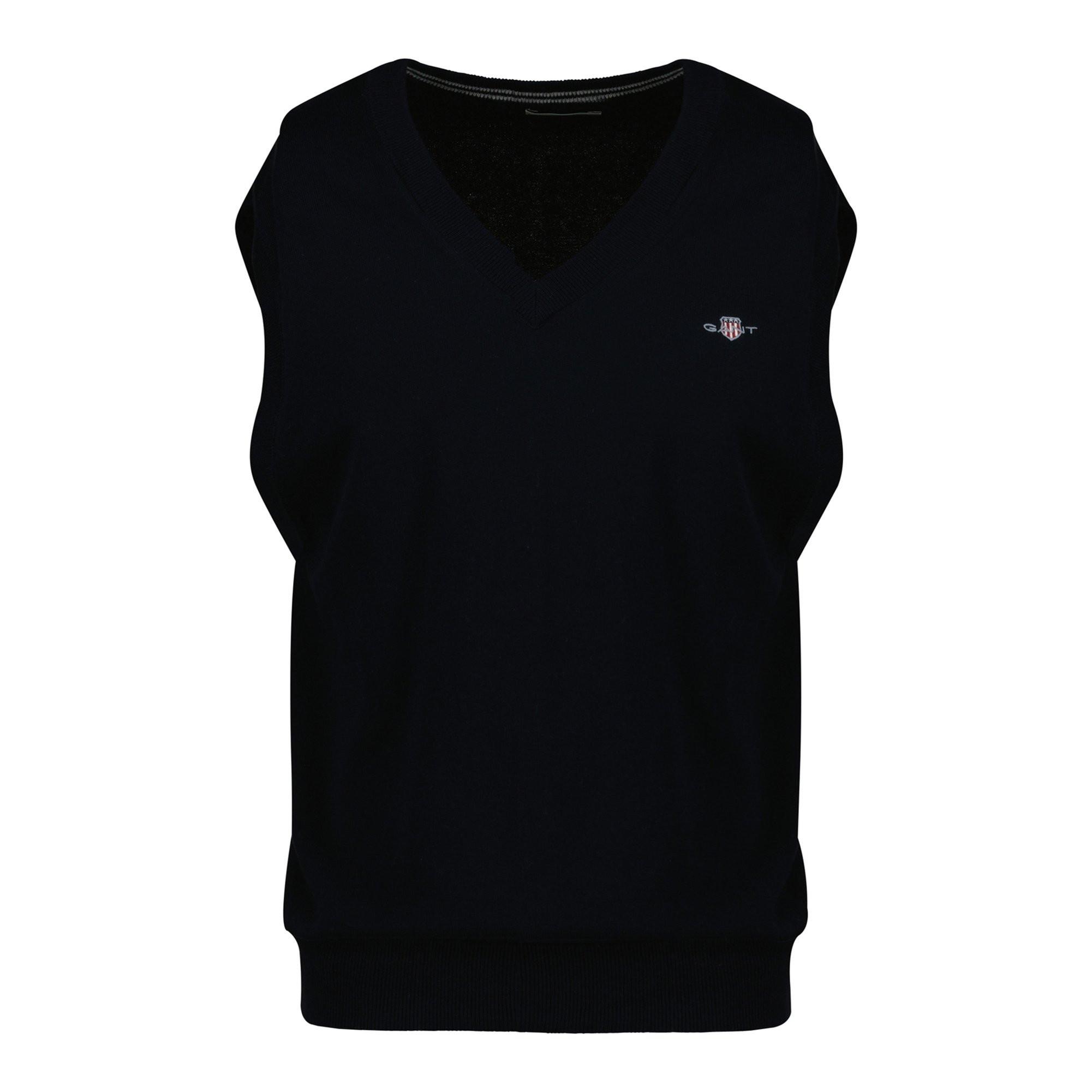 Dieser schlichte V-Ausschnitt-Pullunder ist aus feinem Strick aus reiner Baumwolle gefertigt. Er verfügt über Rippbündchen am Saum und an den Armausschnitten sowie eine kleine Logo-Stickerei und bietet eine normale Passform.