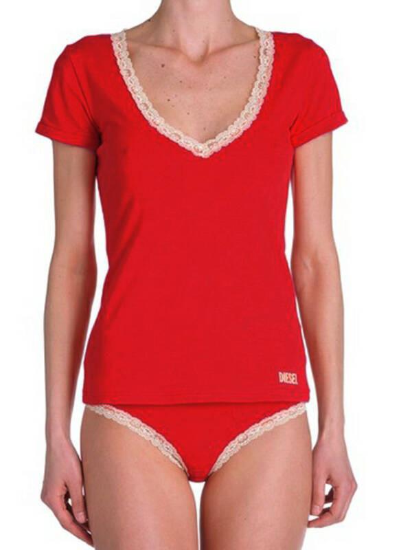 DIESEL, Kurzarm V-Ausschnitt Shirt mit Spitzenbesatz