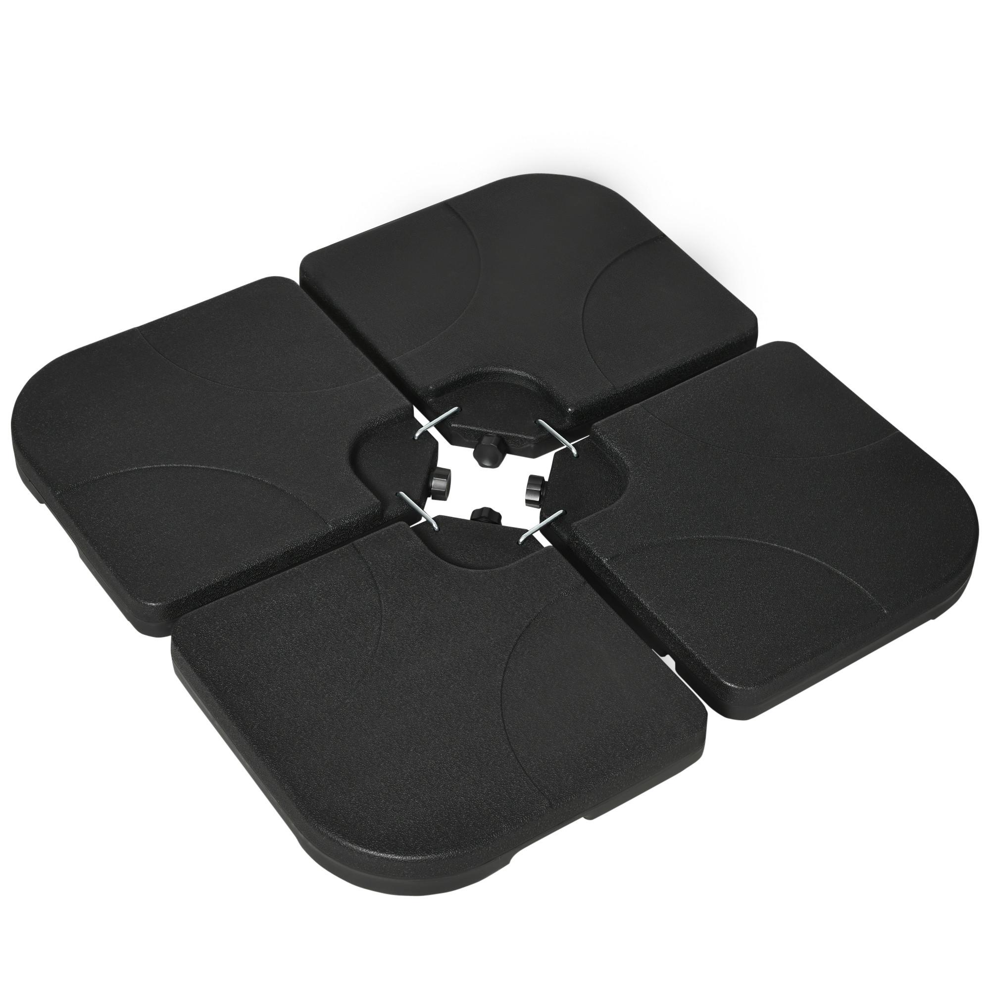Mit diesen Outsunny Gewichtsplatten für Sonnenständer erhalten ihre Sonnenschirmständer einen stabilen Stand. Jedes Teil ist aus HDPE-Kunststoff gefertigt, langlebig, robust und gut geeignet für den Einsatz im Freien. Jedes Stück verfügt über eine Einfüllöffnung und einen Schraubverschluss, zum Befüllen mit 15 kg Wasser oder 19,5 kg Sand. Im leeren Zustand sind diese Sonnenschirmständer leicht zu tragen. Schaffen Sie sich mit unserer Hilfe einen sicheren Stand für ihre Sonnenschirme.