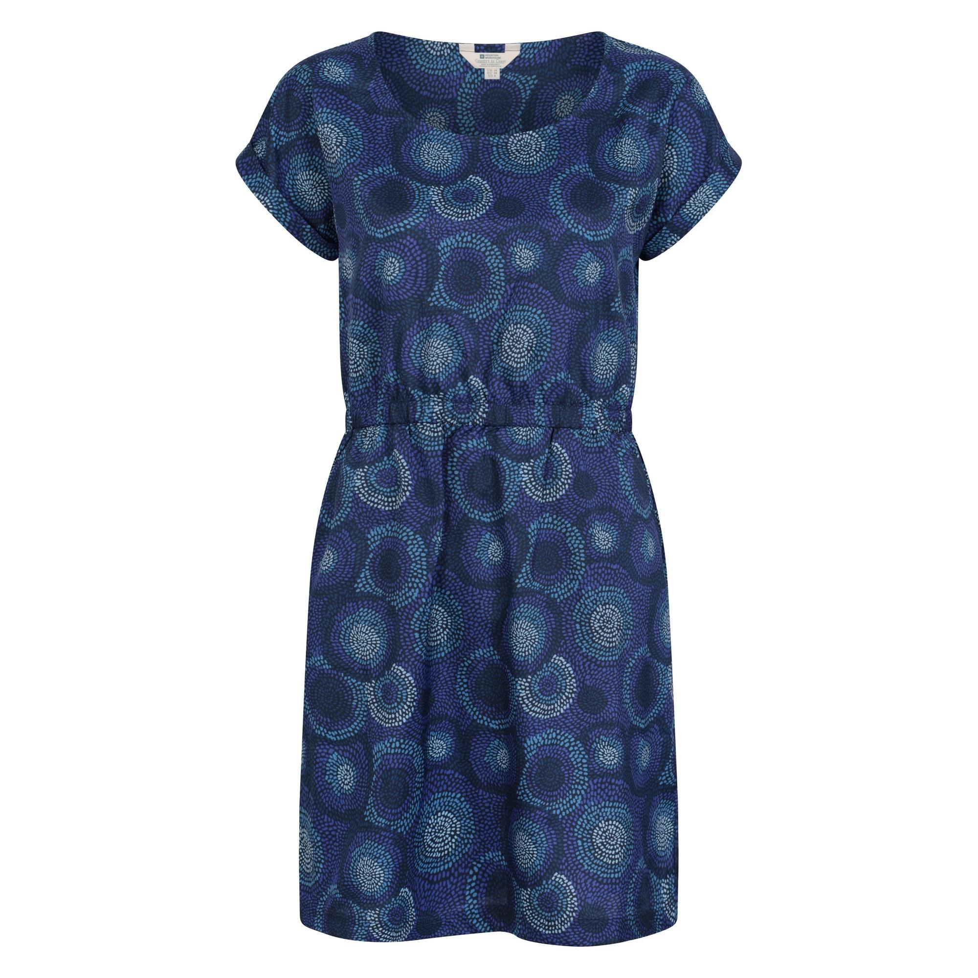 Das Mykonos Kleid präsentiert sich mit einem lebhaften, durchgehenden Kreismuster und bietet eine stilvolle und bequeme Option für verschiedene Anlässe. Das Design umfasst einen Rundhalsausschnitt und kurze Ärmel für eine entspannte Passform. Eine elastische Taille betont die Silhouette und sorgt für eine schmeichelhafte Form.