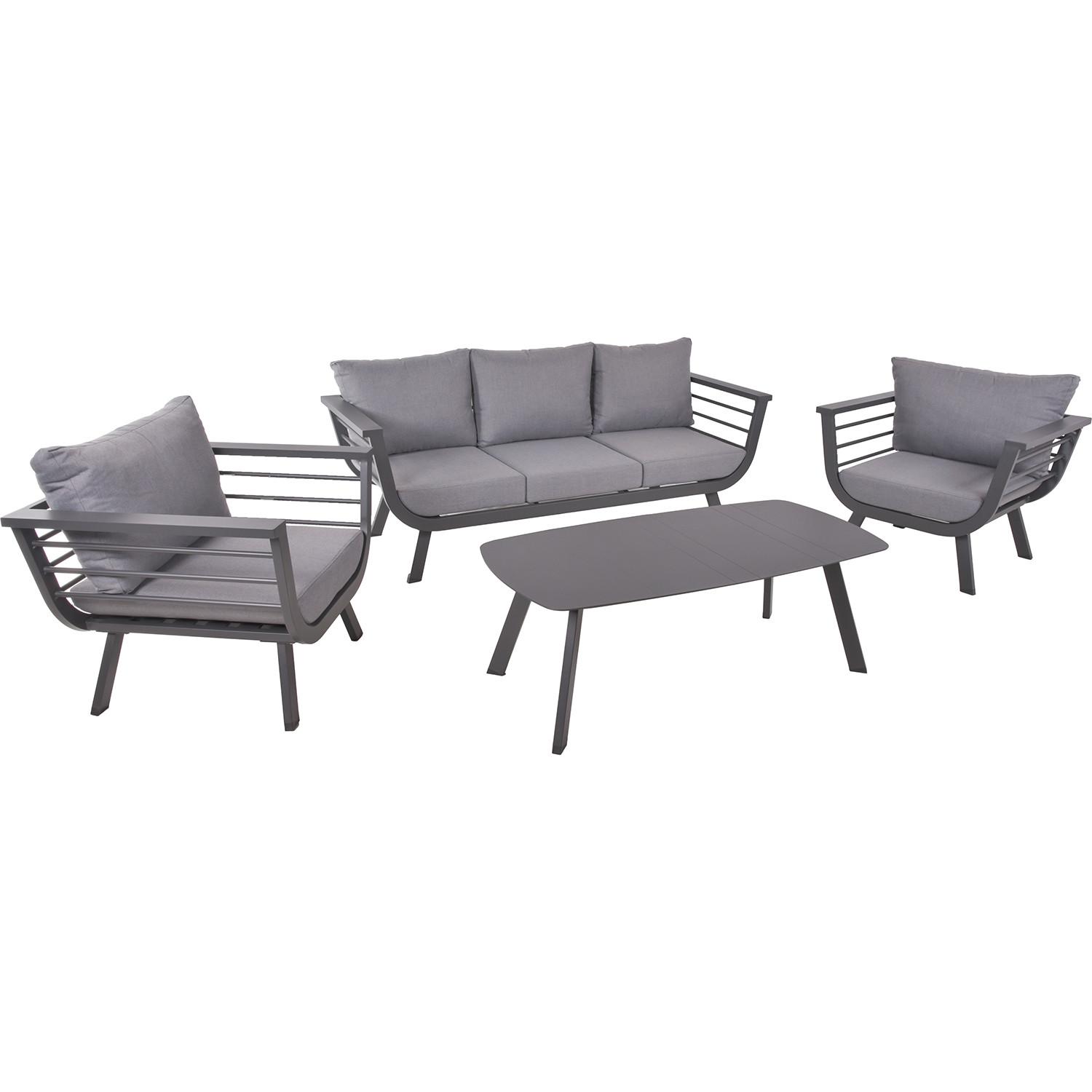 Willkommen zur Lounge-Gruppe Elia, der ultimativen Transformation für Ihre Terrasse oder Ihren Garten, die diese Bereiche in eine stilvolle und bequeme Oase umwandelt. Ausgestattet mit einem geräumigen 3-Sitzer Sofa, zwei gemütlichen Sesseln und einem eleganten Tisch, alle aus robustem und langlebigem hellgrauem Aluminium, ist die Elia Lounge-Gruppe der Inbegriff von Eleganz und Komfort. Mit weichen Kissen und Auflagen in der Farbe Grau, die einen ansprechenden Kontrast zum Aluminiumrahmen bilden, ist diese Lounge-Gruppe nicht nur ein Blickfang, sondern auch äusserst bequem. Ihre modernen und zugleich zeitlosen Designelemente passen perfekt in jede Umgebung, während ihre klaren Linien und elegante Farbkombination sie zur erstklassigen Wahl für Designliebhaber machen.