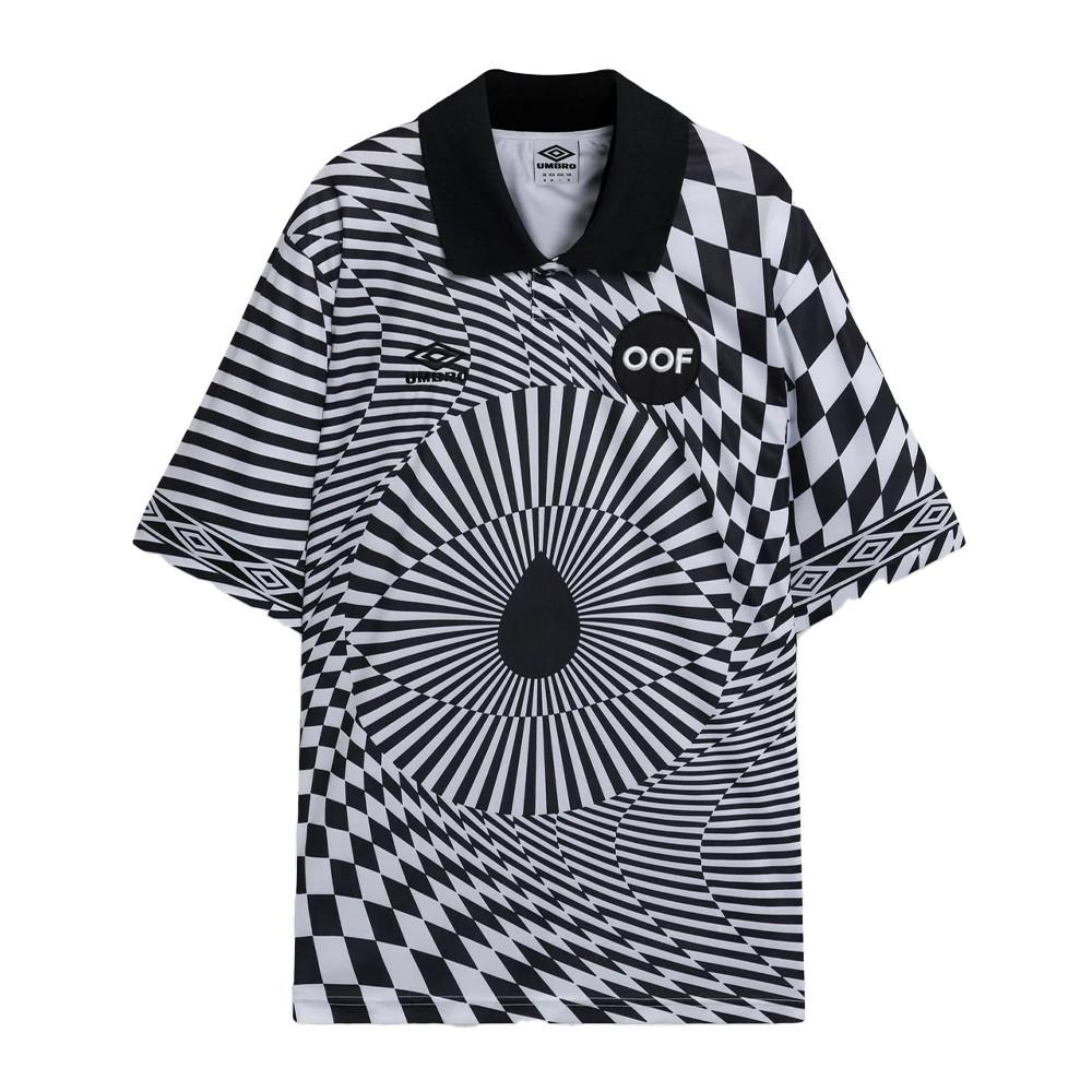 Dieses Trikot präsentiert ein auffälliges schwarz-weisses geometrisches Muster, das in Zusammenarbeit mit Hank Willis Thomas entworfen wurde. Das Shirt verfügt über einen klassischen Polokragen und kurze Ärmel und bietet einen unverwechselbaren und künstlerischen Look.