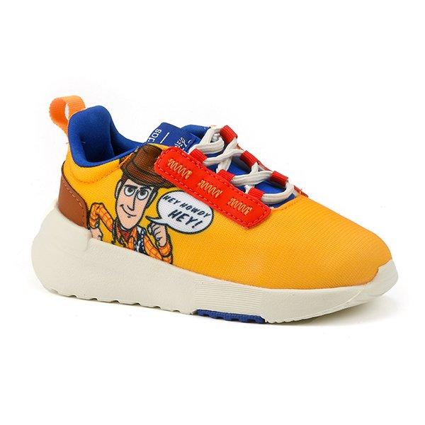 Die Racer Adidas sind Sportschuhe für Kinder, die für alltägliche Aktivitäten, Wandern und Freizeit konzipiert sind. Diese Sneakers verfügen über ein textiles und synthetisches Obermaterial und bieten eine Mischung aus Komfort und Vielseitigkeit. Das Futter ist auch aus Textil gefertigt und sorgt für extra Weichheit für die Füße. Die Einlegesohlen bestehen aus Textil, während die Einlegesohlen aus Gummi bestehen, was einen starken Schutz und eine gute Stoßdämpfung bietet. Details dieser Schuhe gehören ein Textil-und Synthetik-Sneaker, die einen Hauch von Stil und Mode. Der Racer Adidas ist in einer leuchtend gelben Farbe erhältlich, mit roten Akzenten rund um die Nelken und einer Illustration von Woody's Toy Story an der Seite. Die Schnürsenkel sind weiß, und auf der Seite ist eine kleine Tafel mit der Meldung "HEY HO, WOOOOW HEY!" zu sehen. Eine kleine Ziehplatte ist auch auf der Rückseite für eine einfache Einstellung sichtbar. Der Racer Adidas ist für Kinder konzipiert, die Sport und Freizeit lieben und bietet eine Mischung aus Komfort, Mode und Vielseitigkeit.