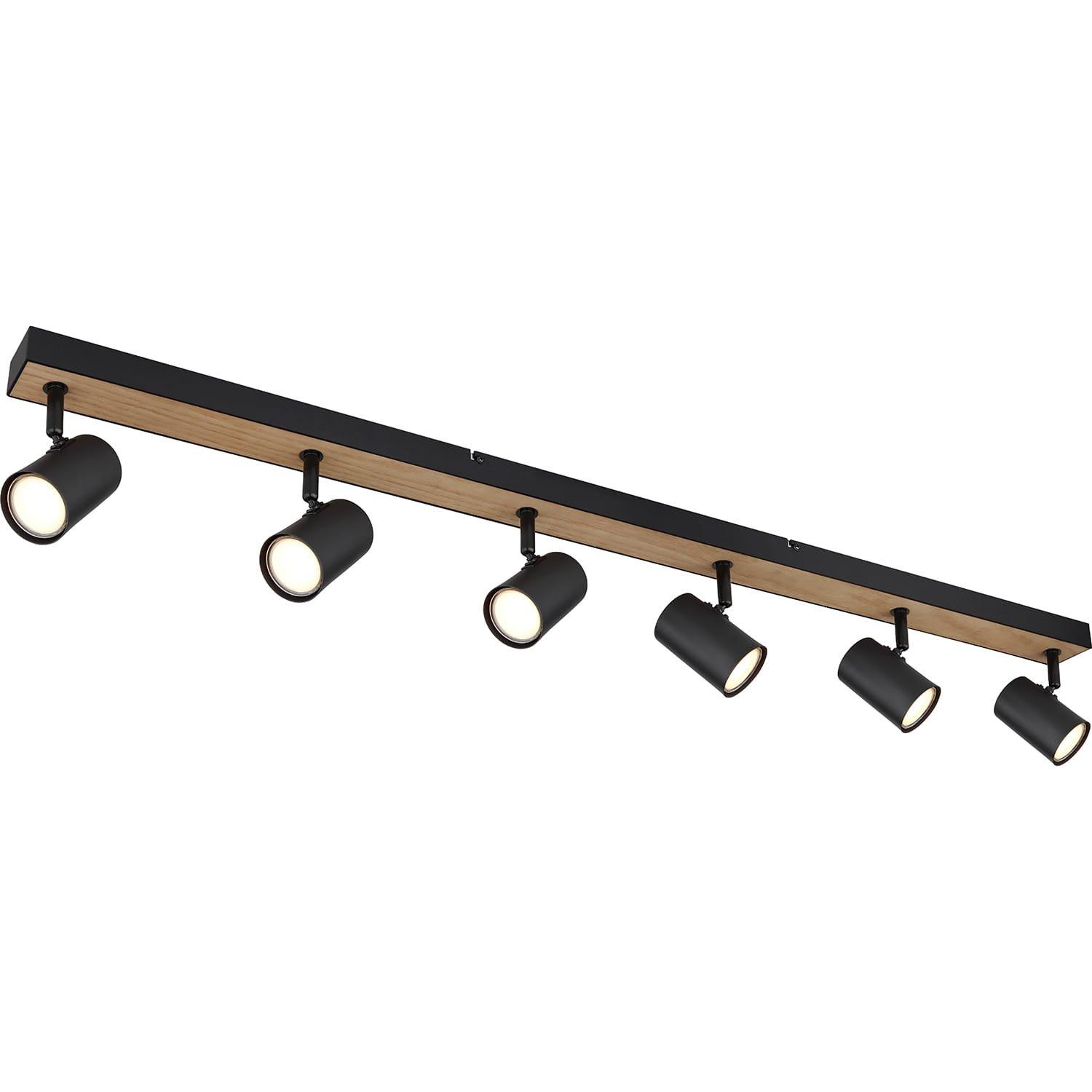 Strahler Metall schwarz matt, MDF holzoptik dunkel, Metall schwarz matt, LxBxH: 1150x60x135mm, exkl. 6x GU10 35W 230V.