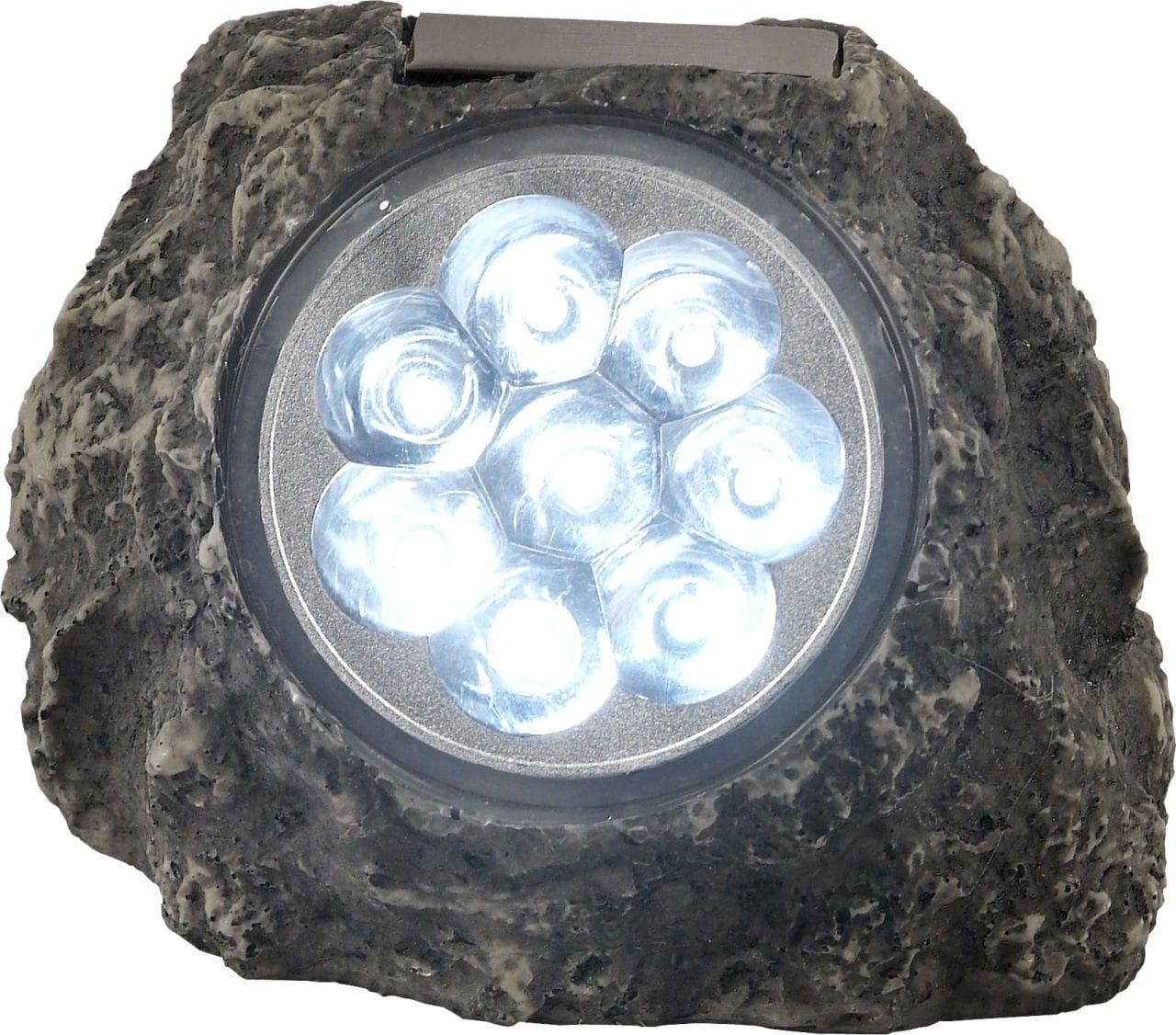 Diese graue Solarlampe aus Kunststoff lässt sich aufgrund ihrer steinförmigen Gestalt und der IP44 Schutzart perfekt in Ihren Aussenbereich integrieren. Durch die zwei Leuchtspots aus klaren Kunststoff ist für die ideale Beleuchtung gesorgt. Weitere Produkte in diesem Design finden Sie in derselben Serie.