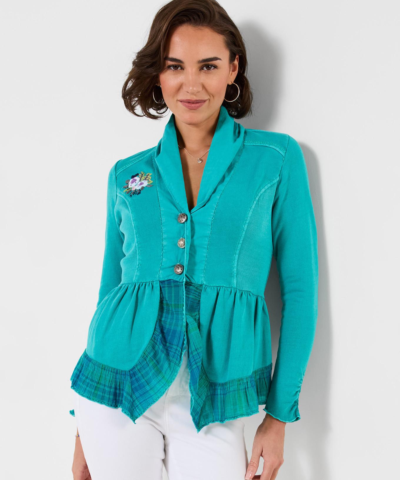 Die Knopfdetails und die Farbgestaltung setzen gezielte Akzente.
